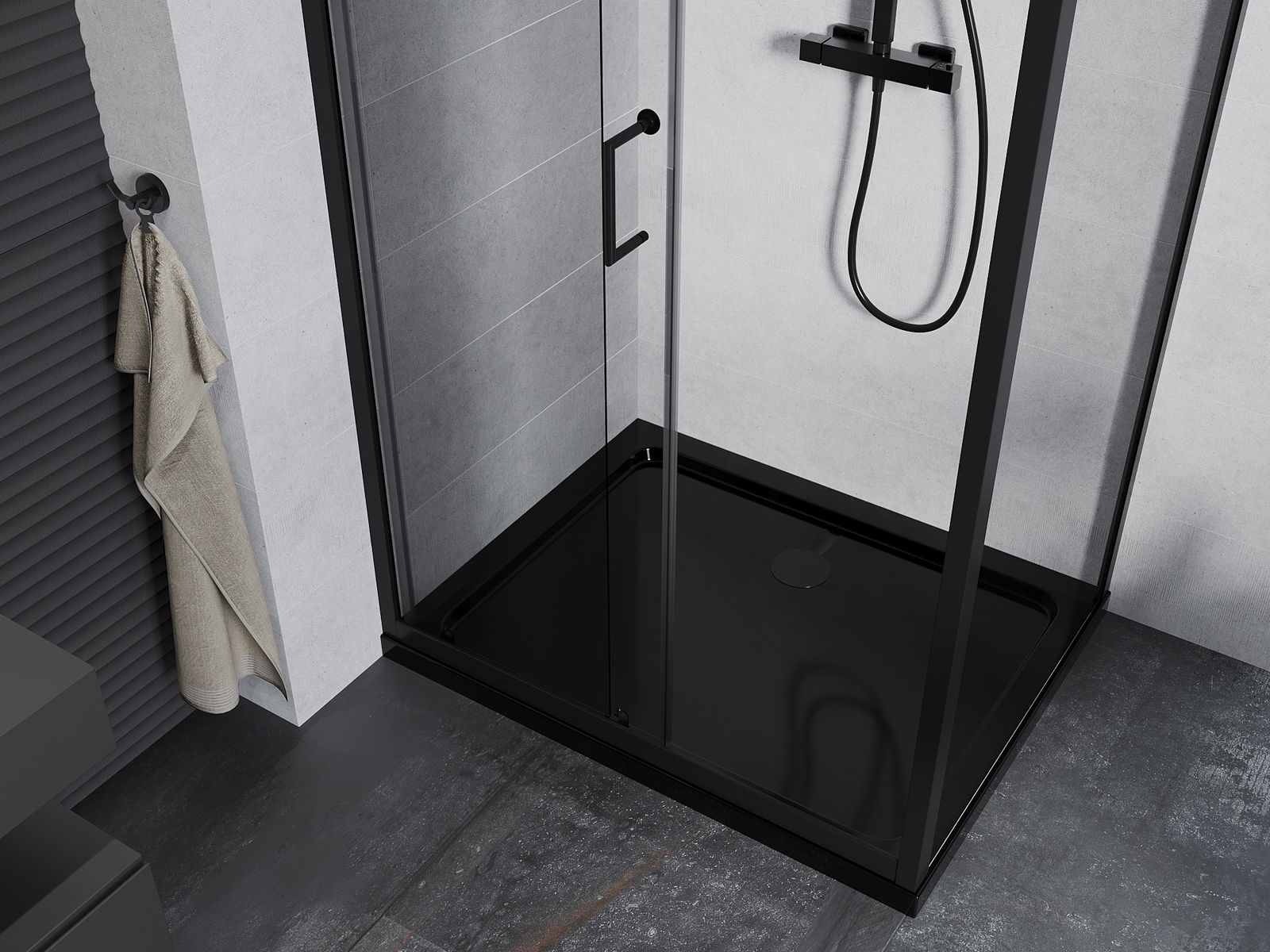 Mexen Apia tolóajtós zuhanykabin 110 x 70 cm, átlátszó, fekete + Flat zuhanytálca, fekete - 840-110-070-70-00-4070B