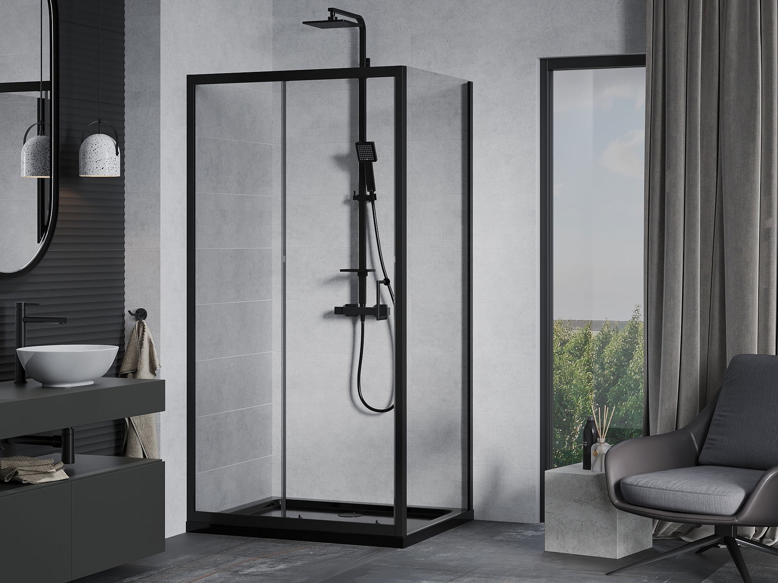A praktikus és kényelmes fogantyú tartós és ellenálló fémből készült. A divatos forma a profilok színéhez igazított kivitelezéssel együtt modern és stílusos megjelenést kölcsönöz az egésznek, kiemelve minden fürdőszoba esztétikáját.