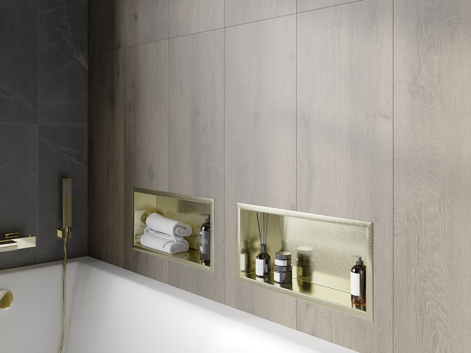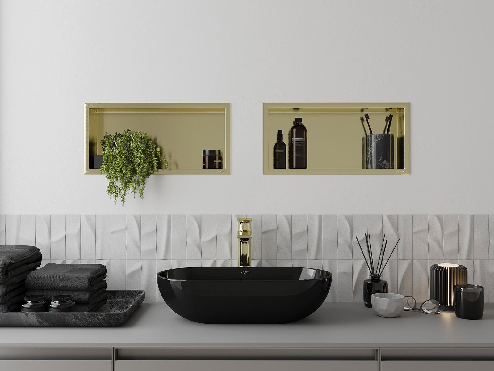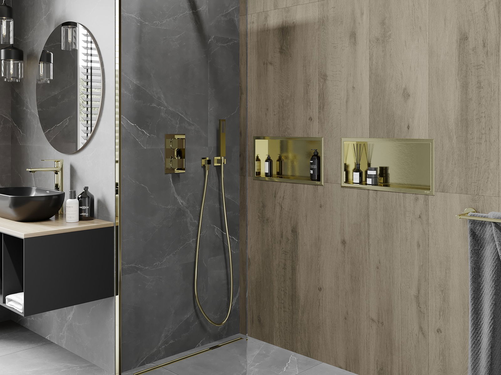 Mexen X-Wall-R süllyesztett polc peremmel 45 x 20 cm, arany kefezett - 1950452010