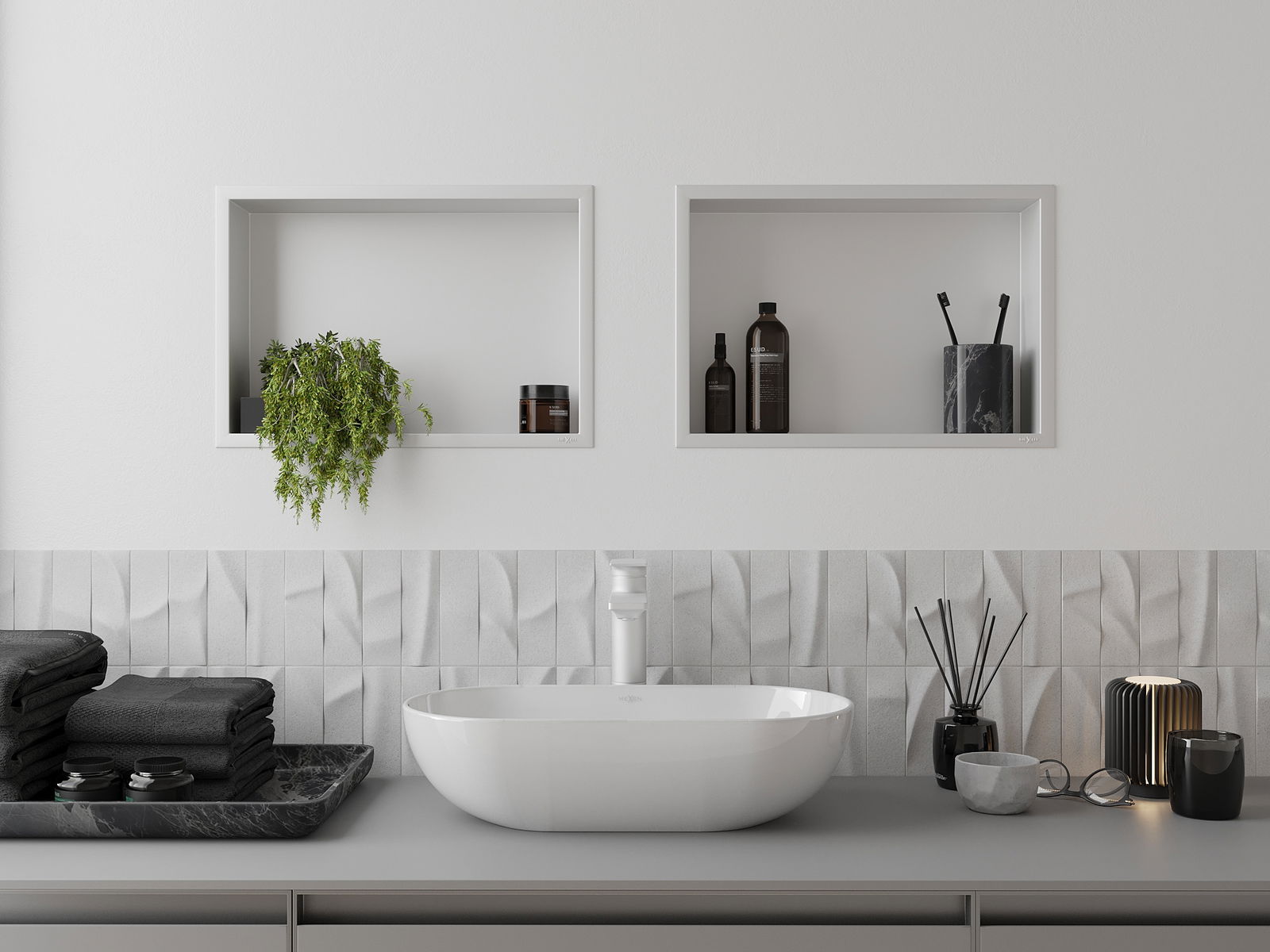 Mexen X-Wall-R süllyesztett polc peremmel 45 x 30 cm, fehér - 1920453010