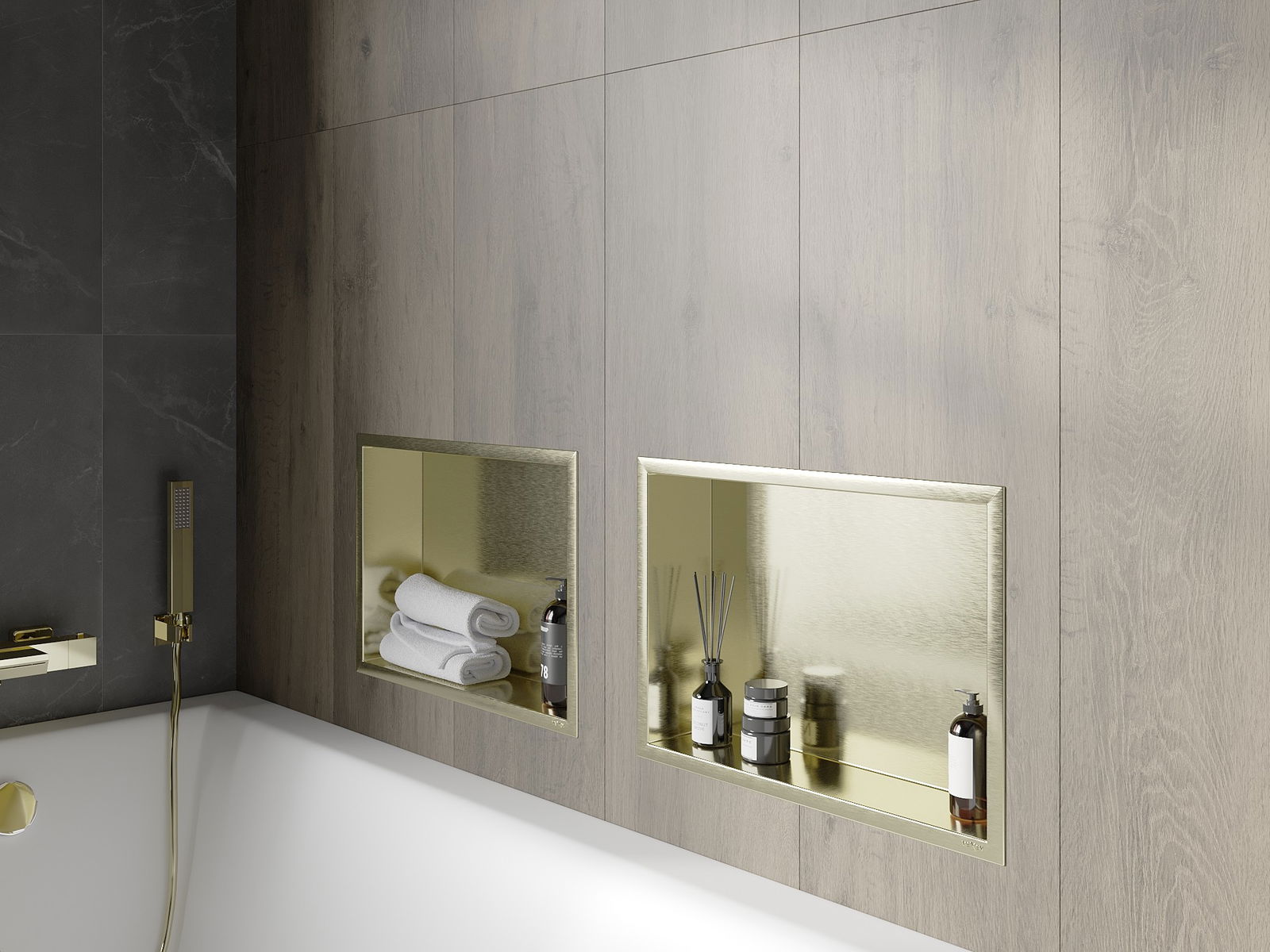 Mexen X-Wall-R fali fülkés polc peremmel 45 x 30 cm, arany kefe - 1950453010