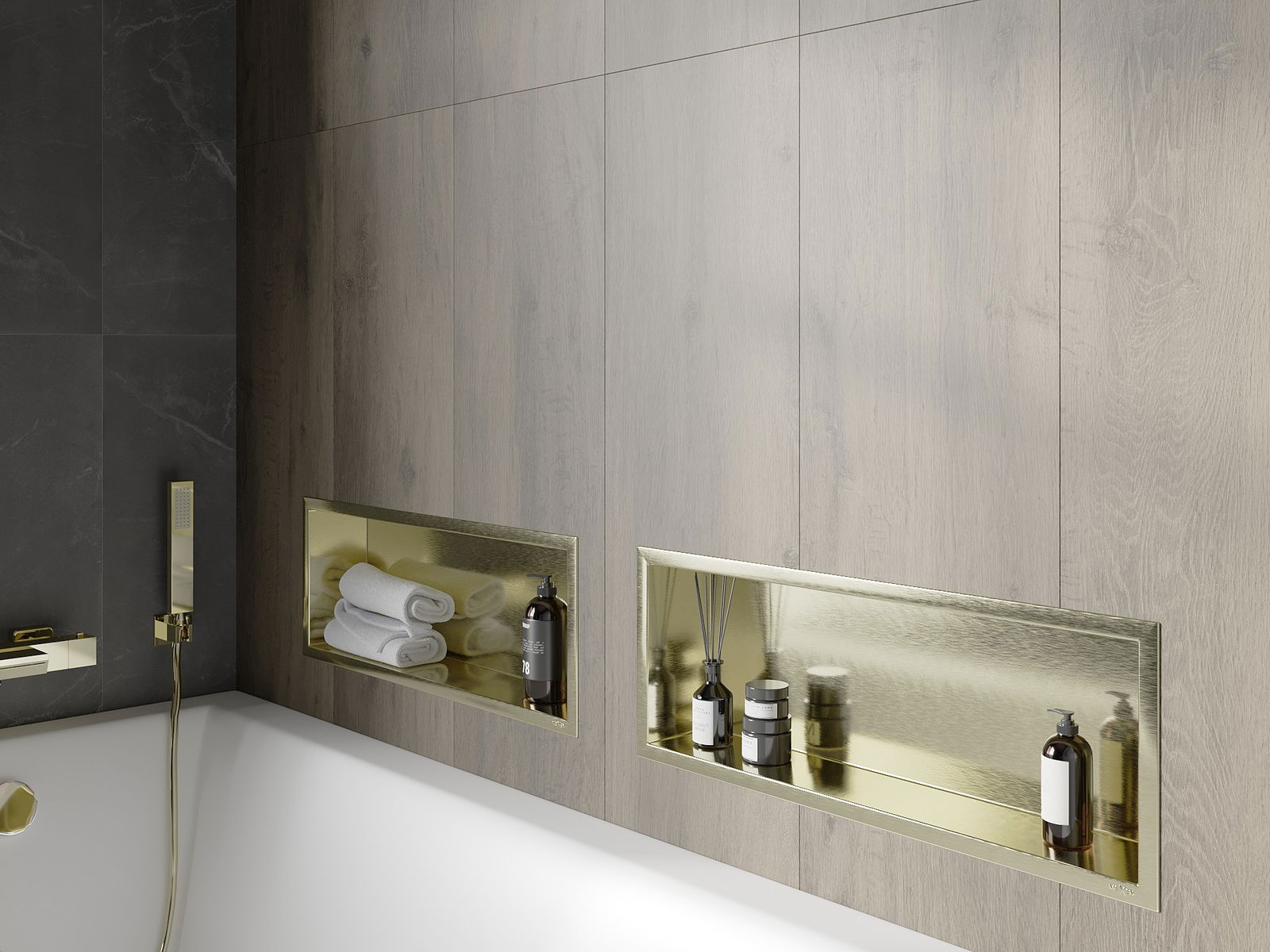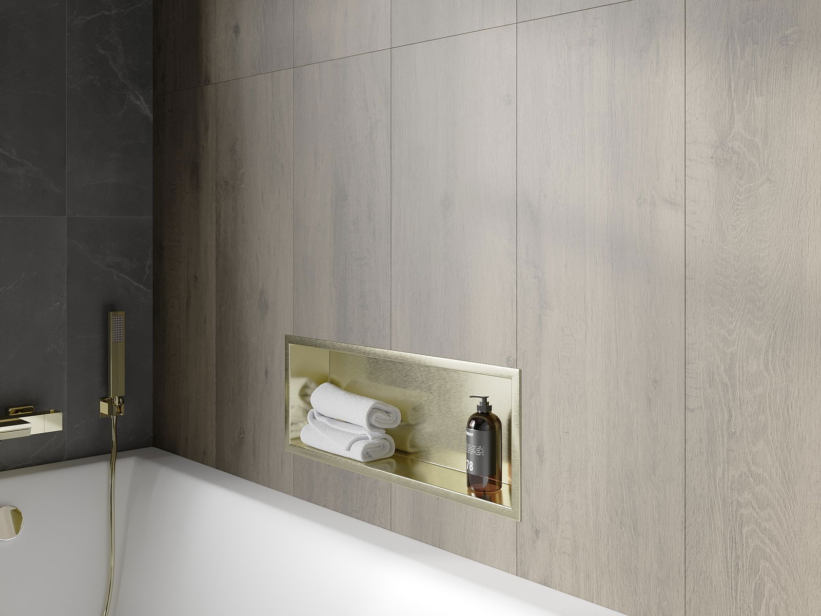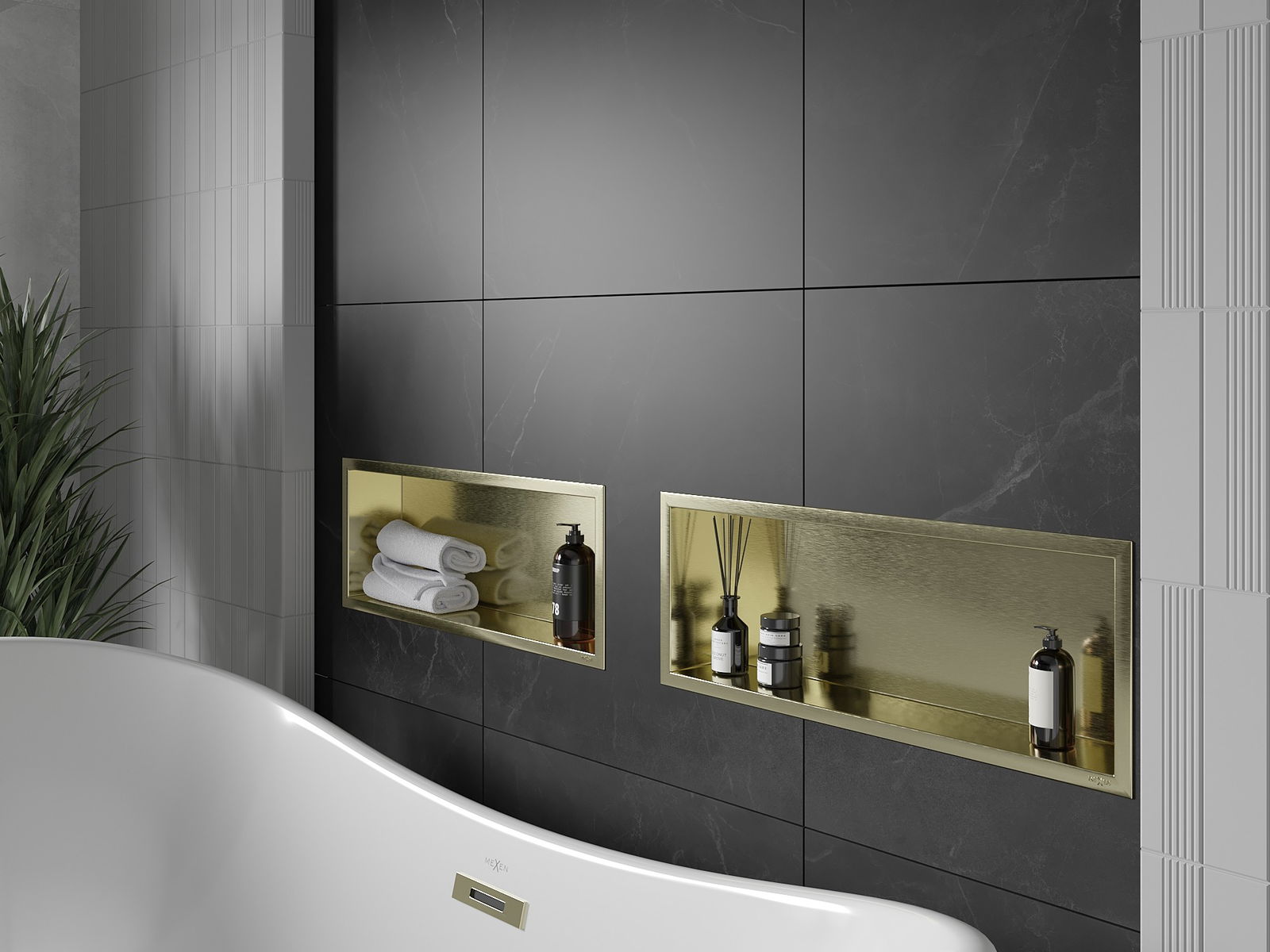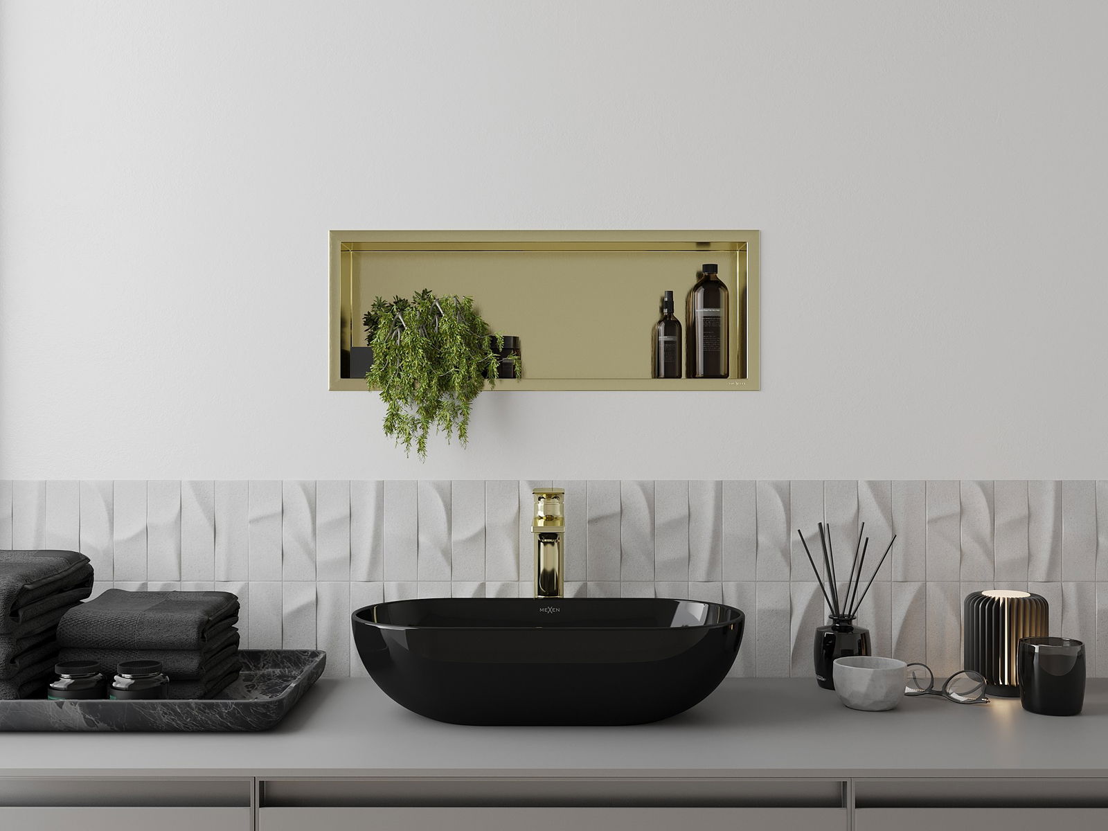 Mexen X-Wall-R süllyesztett polc peremmel 60 x 20 cm, arany szálcsiszolt - 1950602010