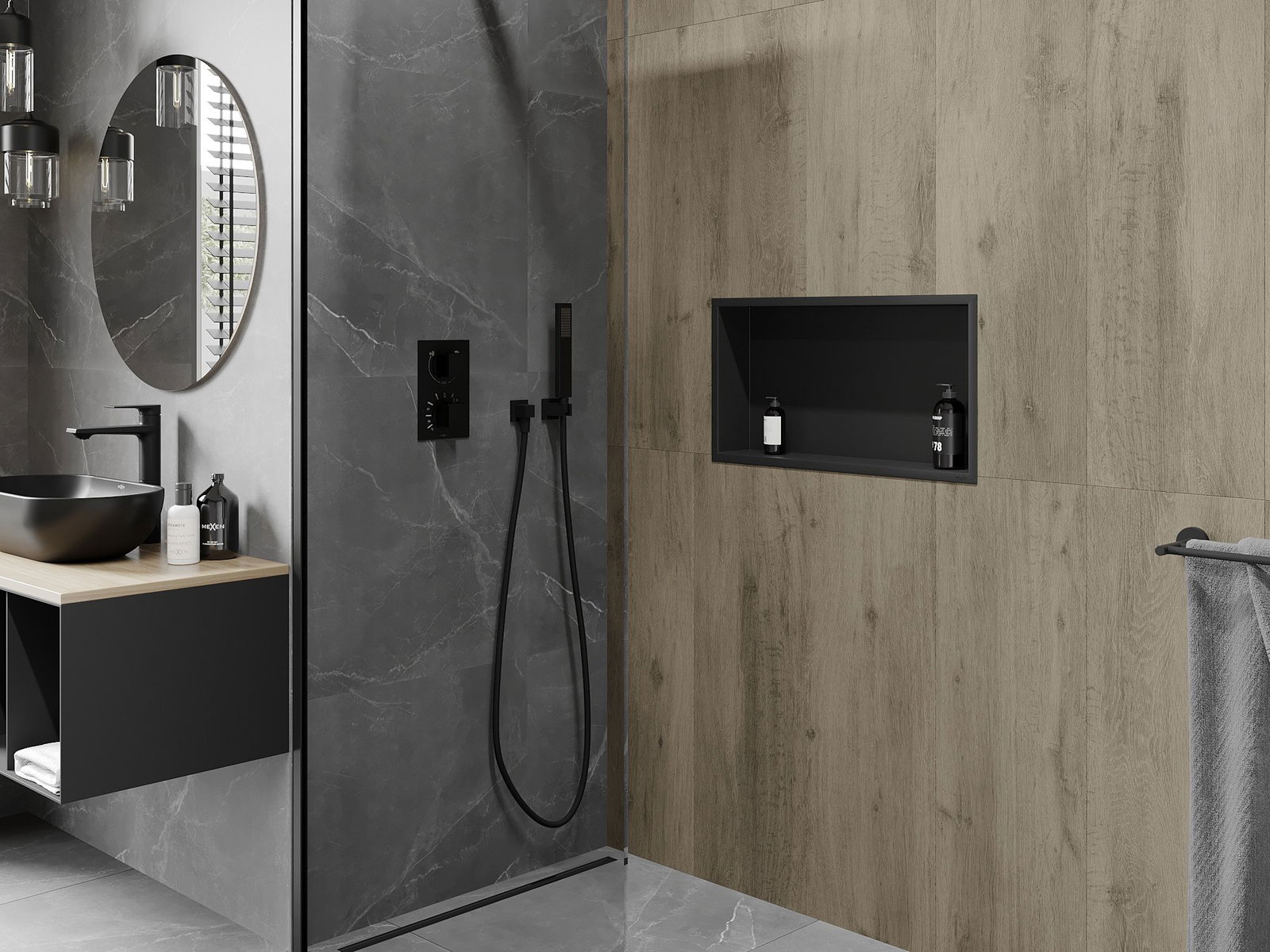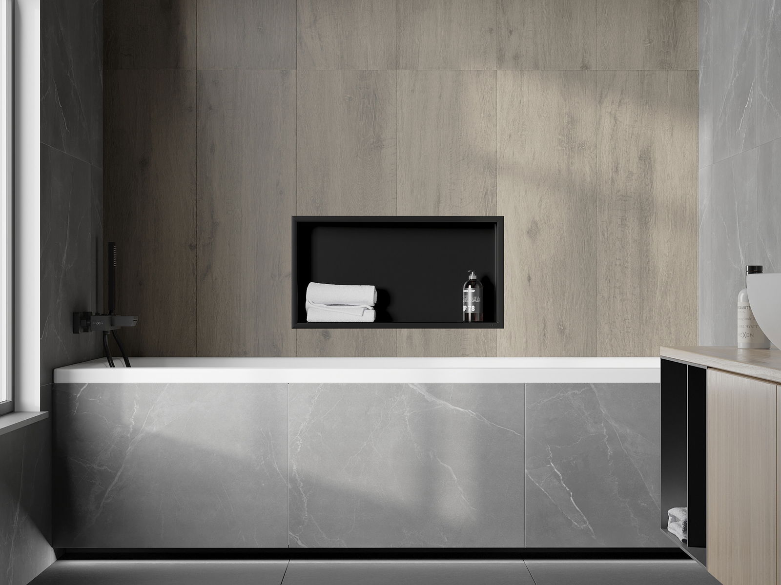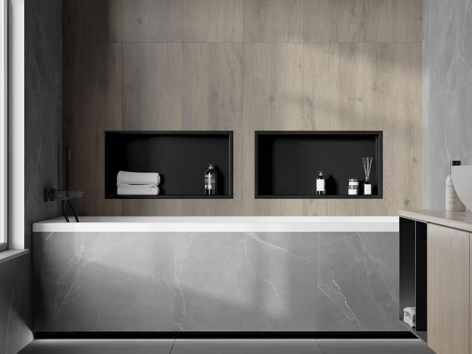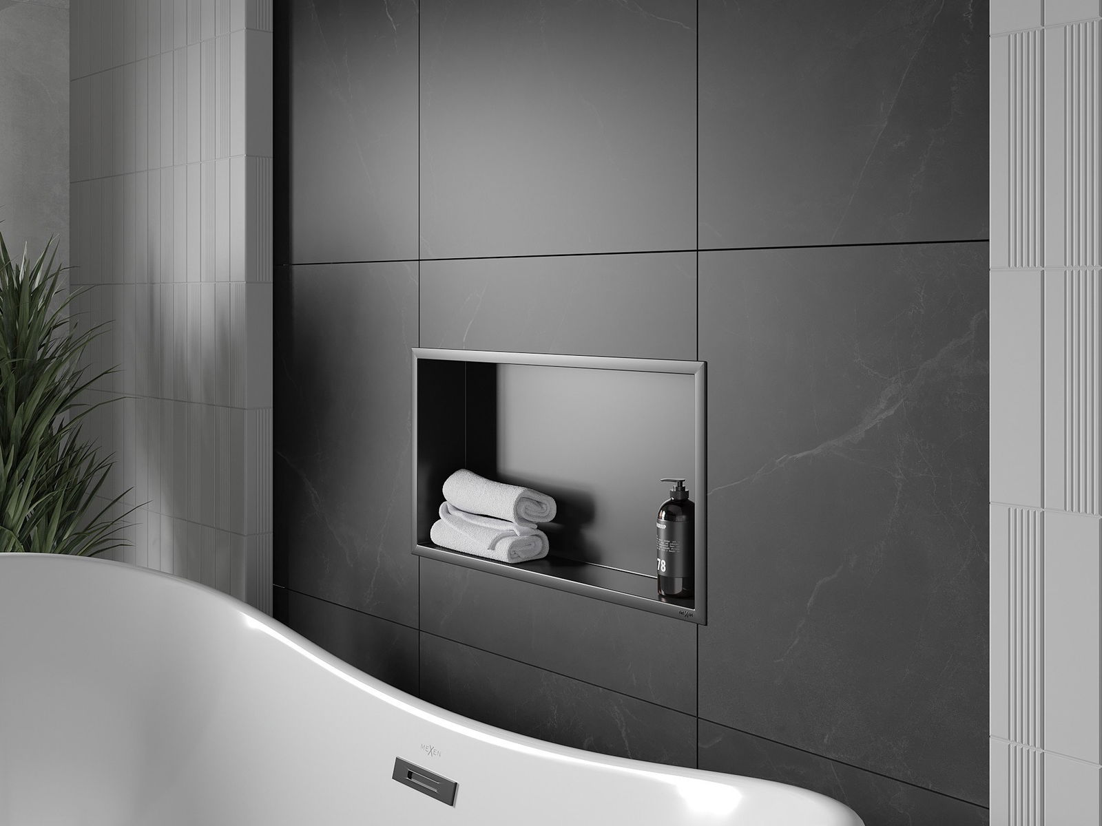Mexen X-Wall-R beépíthető polc peremmel 60 x 30 cm, fekete - 1970603010