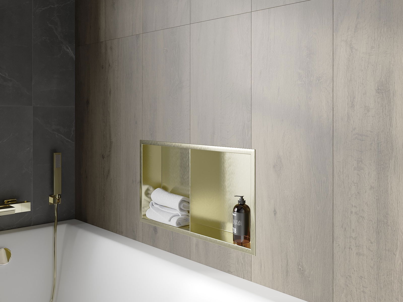 Mexen X-Wall-R süllyesztett polc peremmel és polccal 60 x 30 cm, arany kefe - 1950603010S