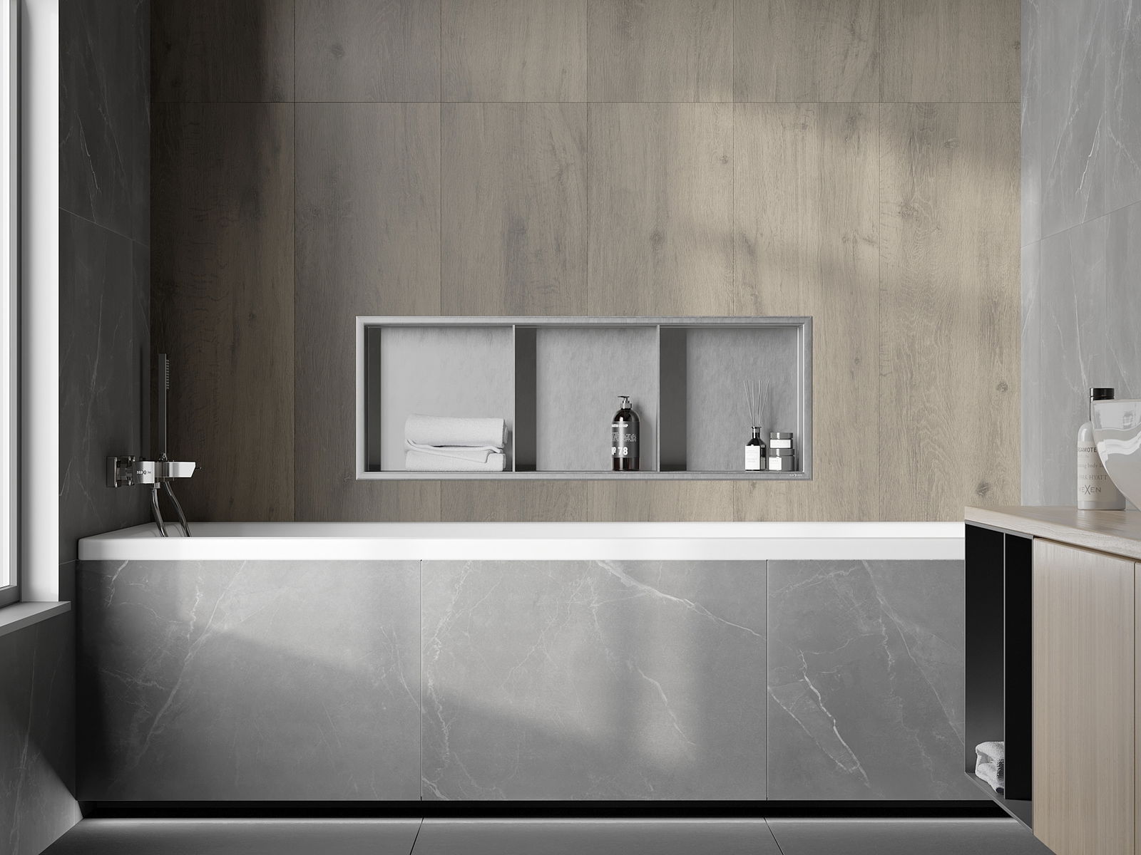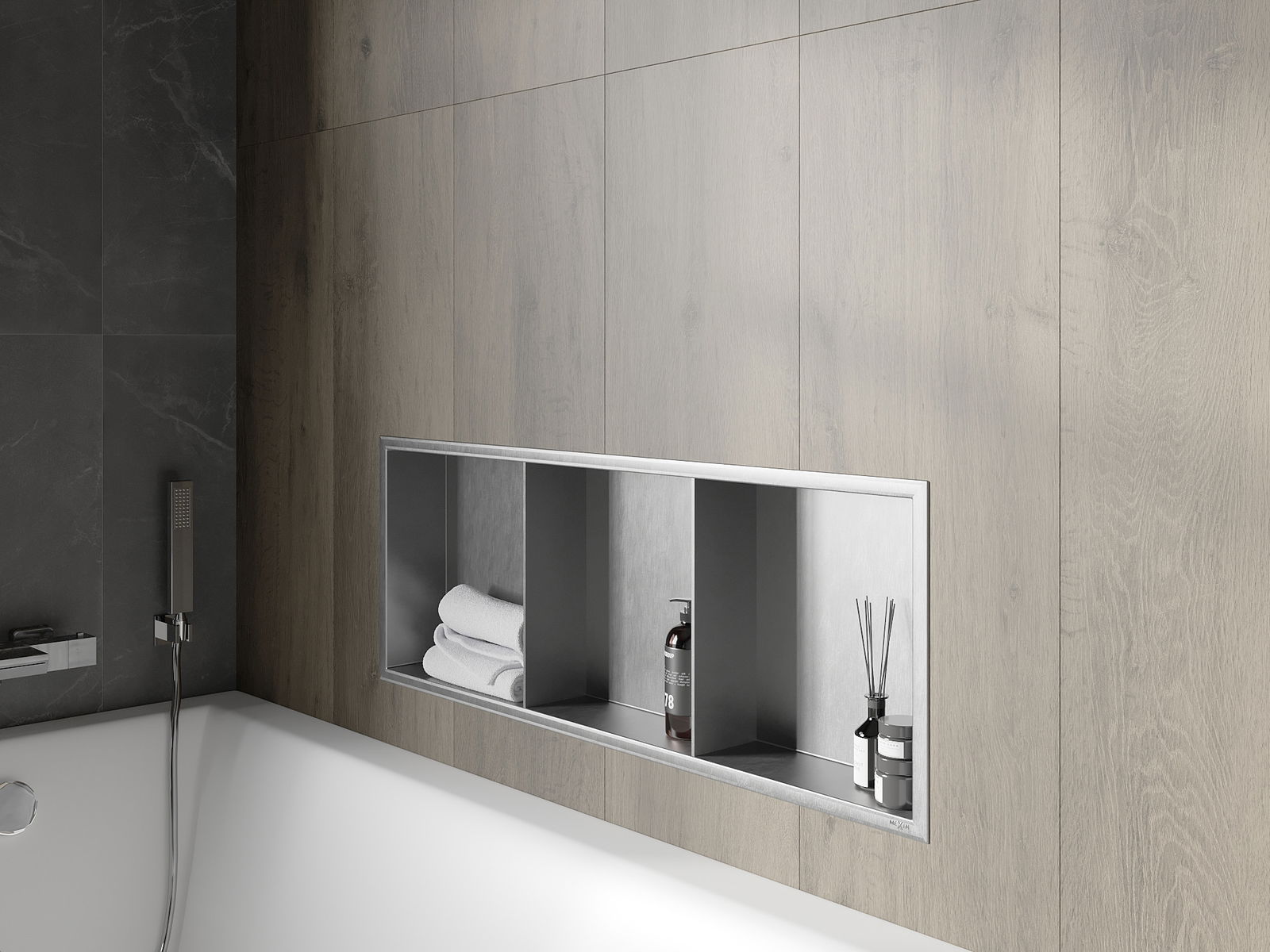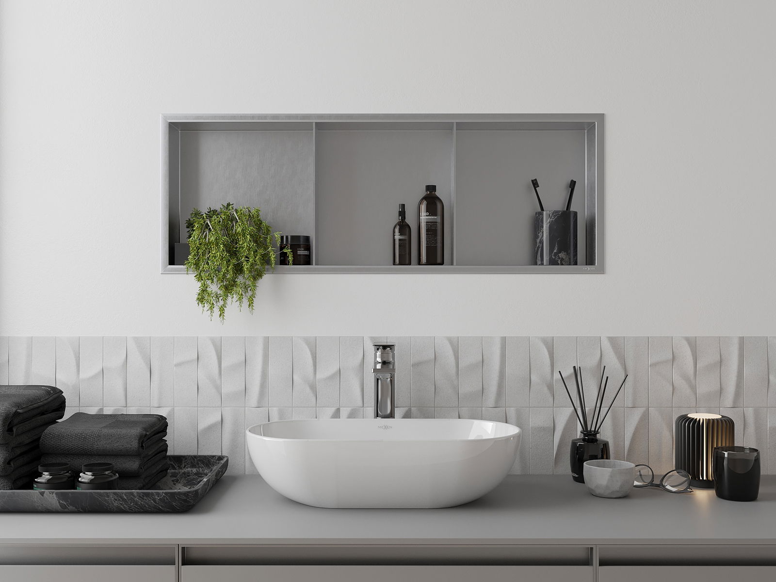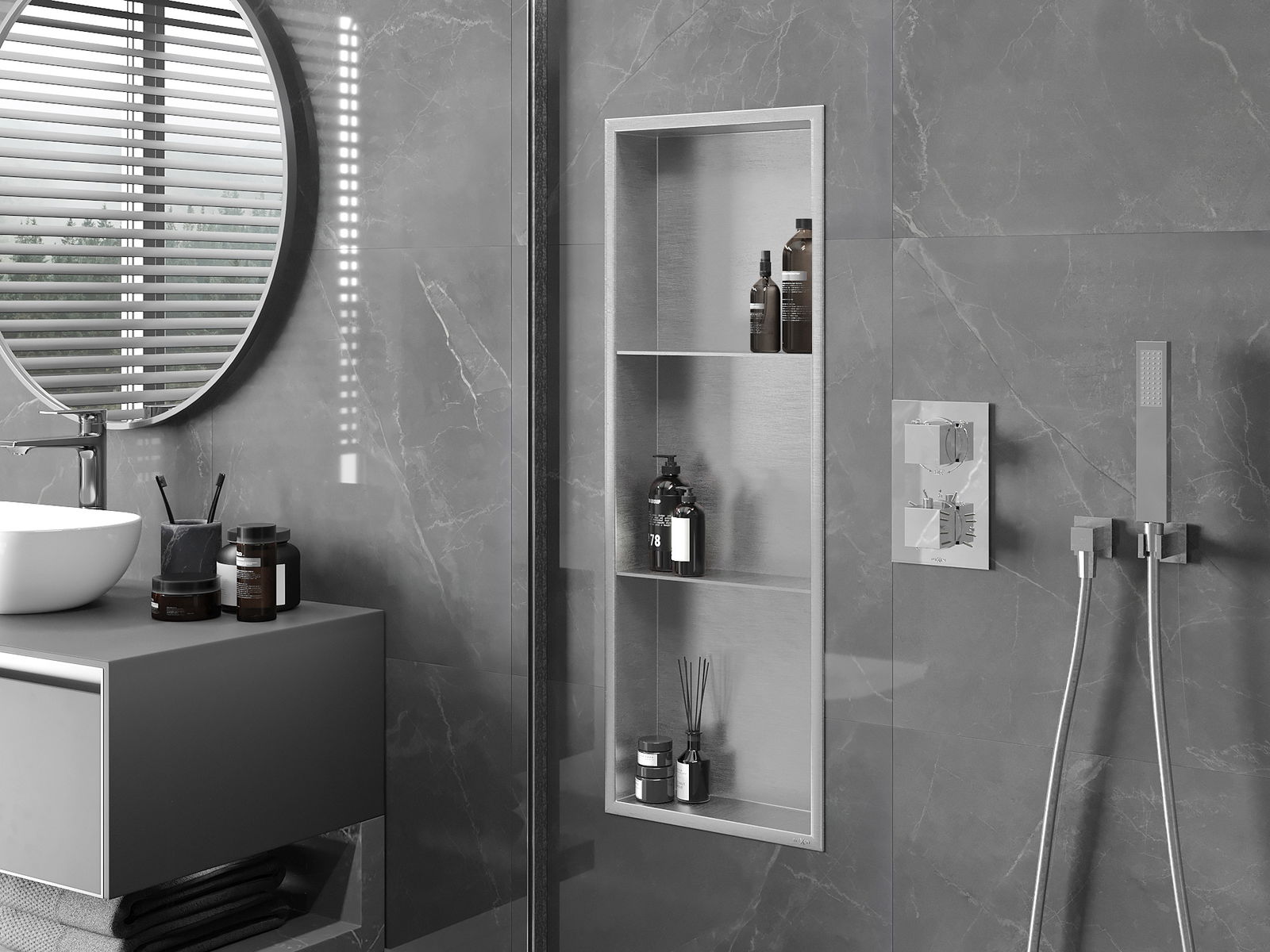 Mexen X-Wall-R süllyesztett polc peremmel és polccal 90 x 30 cm, inox - 1910903010S