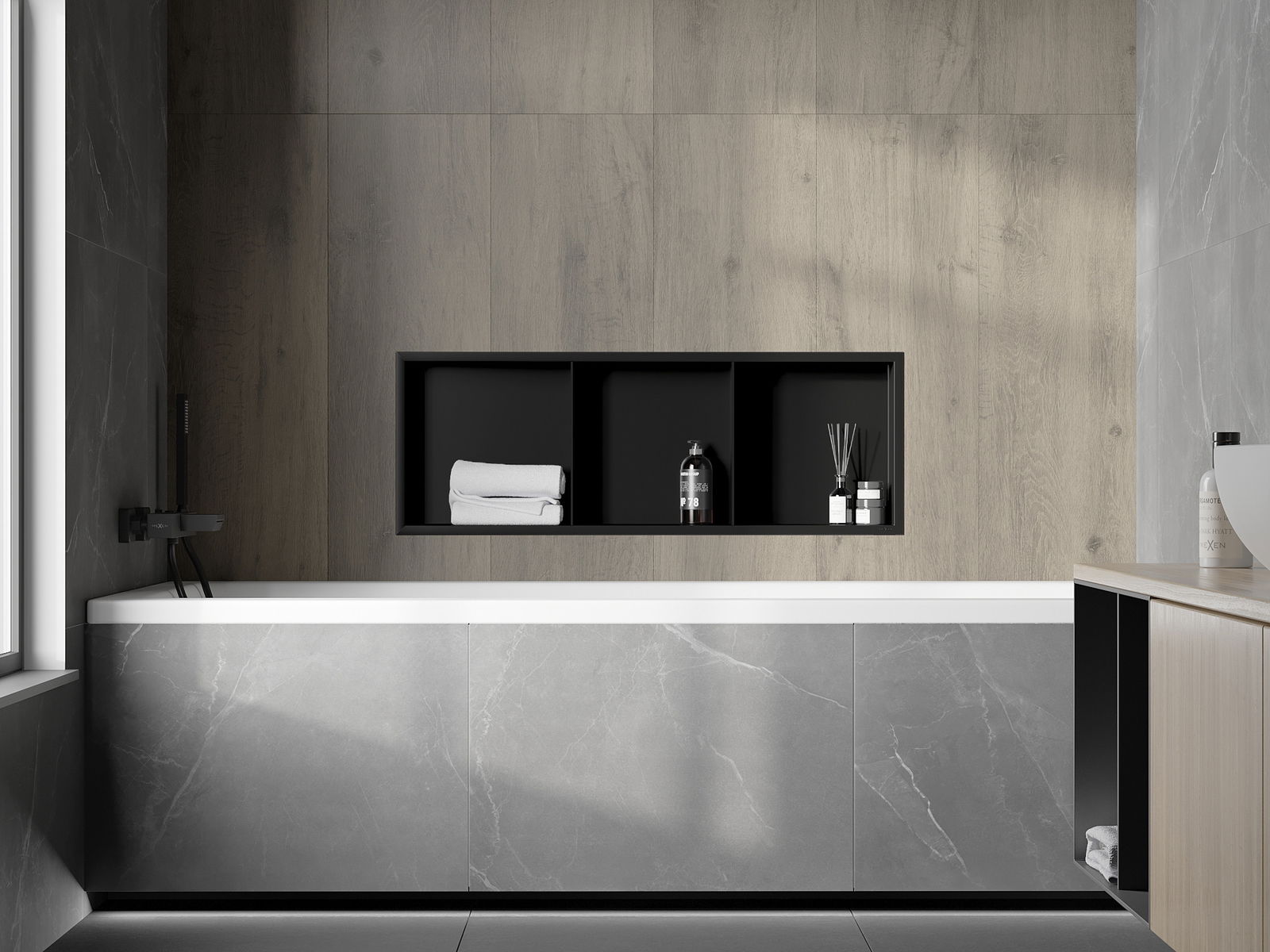 Mexen X-Wall-R fali polc peremmel és polccal 90 x 30 cm, fekete - 1970903010S