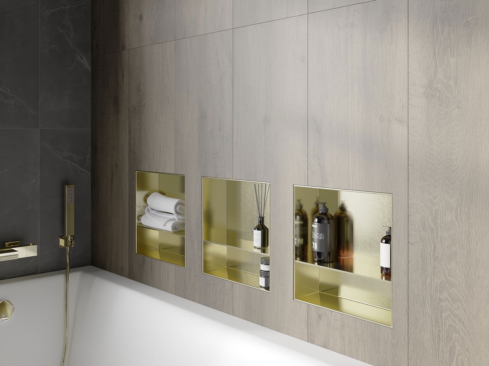 Mexen X-Wall-NR falpolc perem nélkül 30 x 30 cm-es polccal, arany szálcsiszolt - 1951303010S