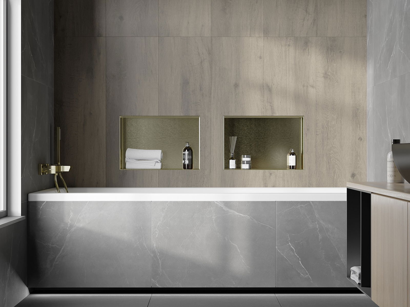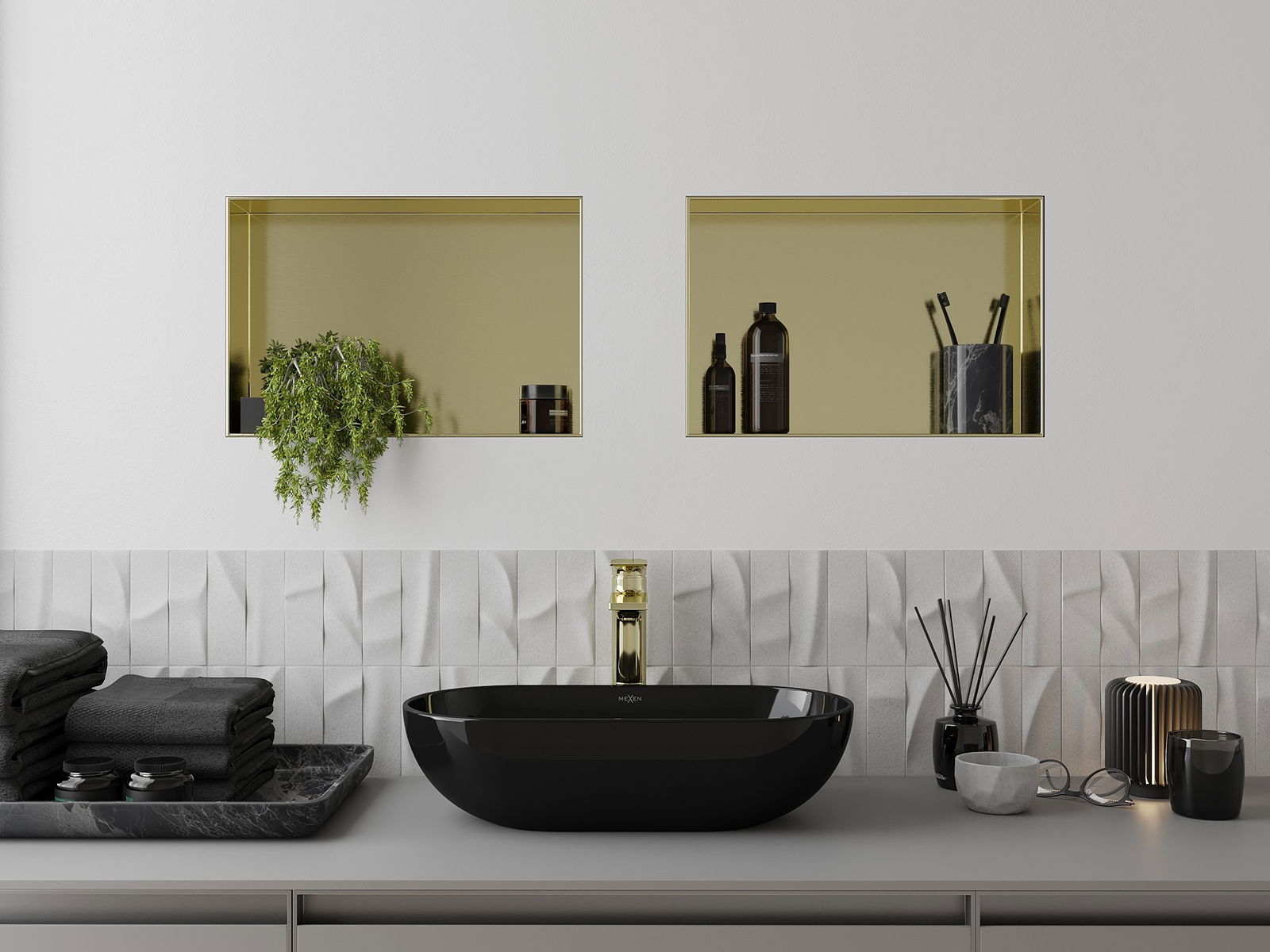 Mexen X-Wall-NR süllyesztett polc perem nélkül 45 x 30 cm, arany szálcsiszolt - 1951453010