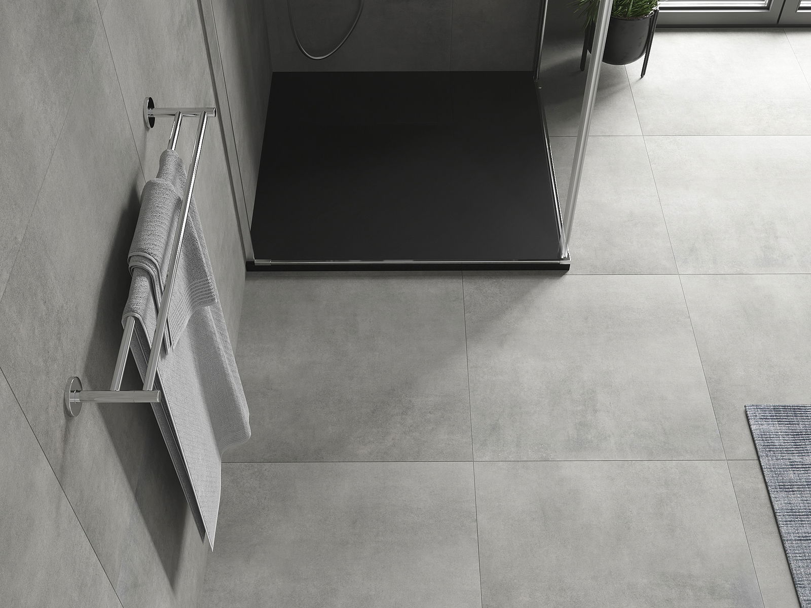 A zuhany tálcának alacsony küszöbértéke van, ami megkönnyíti a belépést és a zuhany elhagyását. Egyedülálló és időtlen kivitelben adja a szobát, így a fürdőszobát kényelmes és esztétikai helyévé teszi a napi relaxációhoz.
