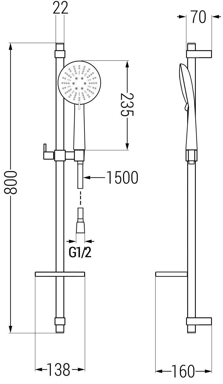 Távolság a faltól: 160 mm