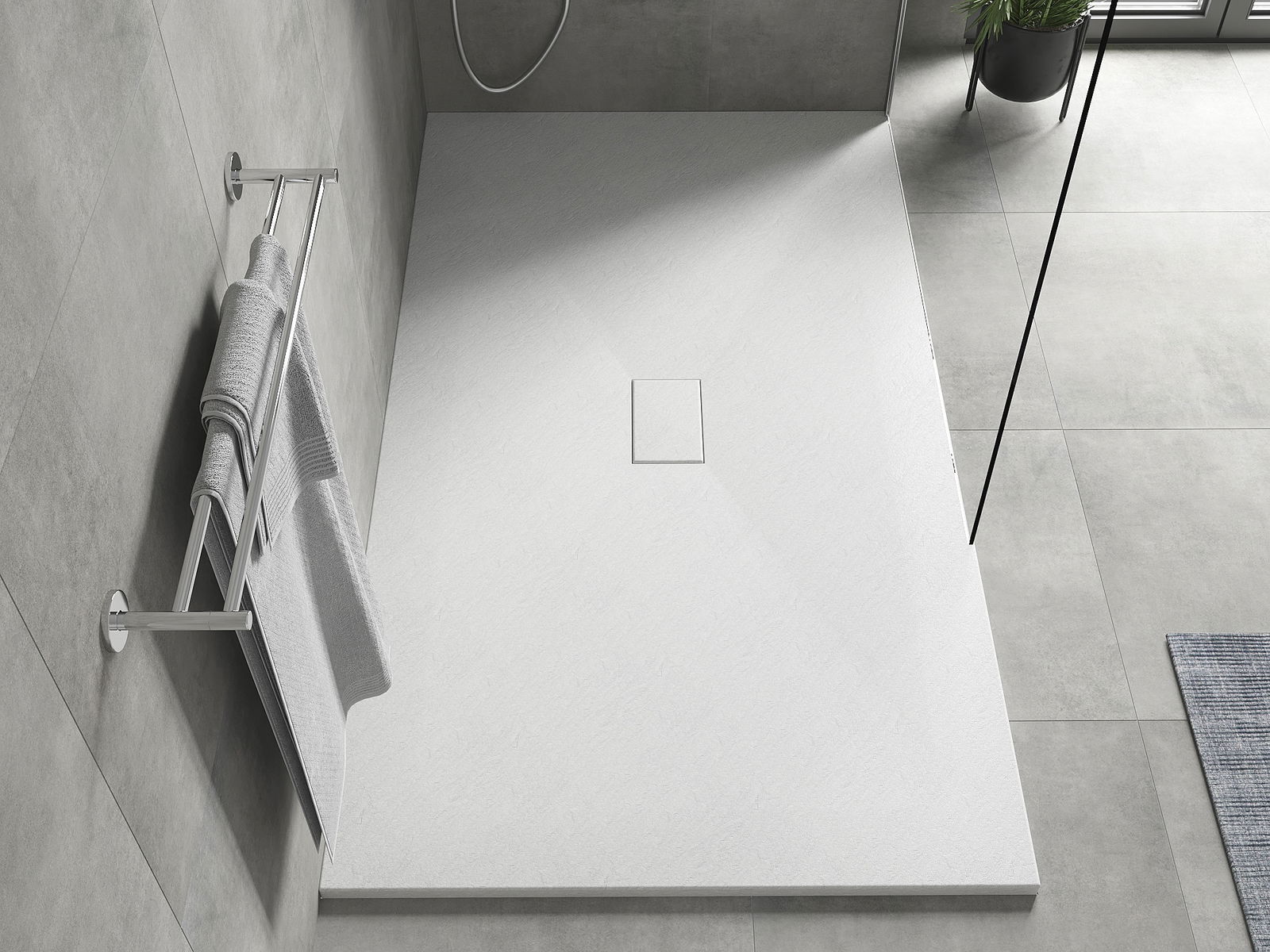 A zuhany tálcának alacsony küszöbértéke van, ami megkönnyíti a belépést és a zuhany elhagyását. Egyedülálló és időtlen kivitelben adja a szobát, így a fürdőszobát kényelmes és esztétikai helyévé teszi a napi relaxációhoz.