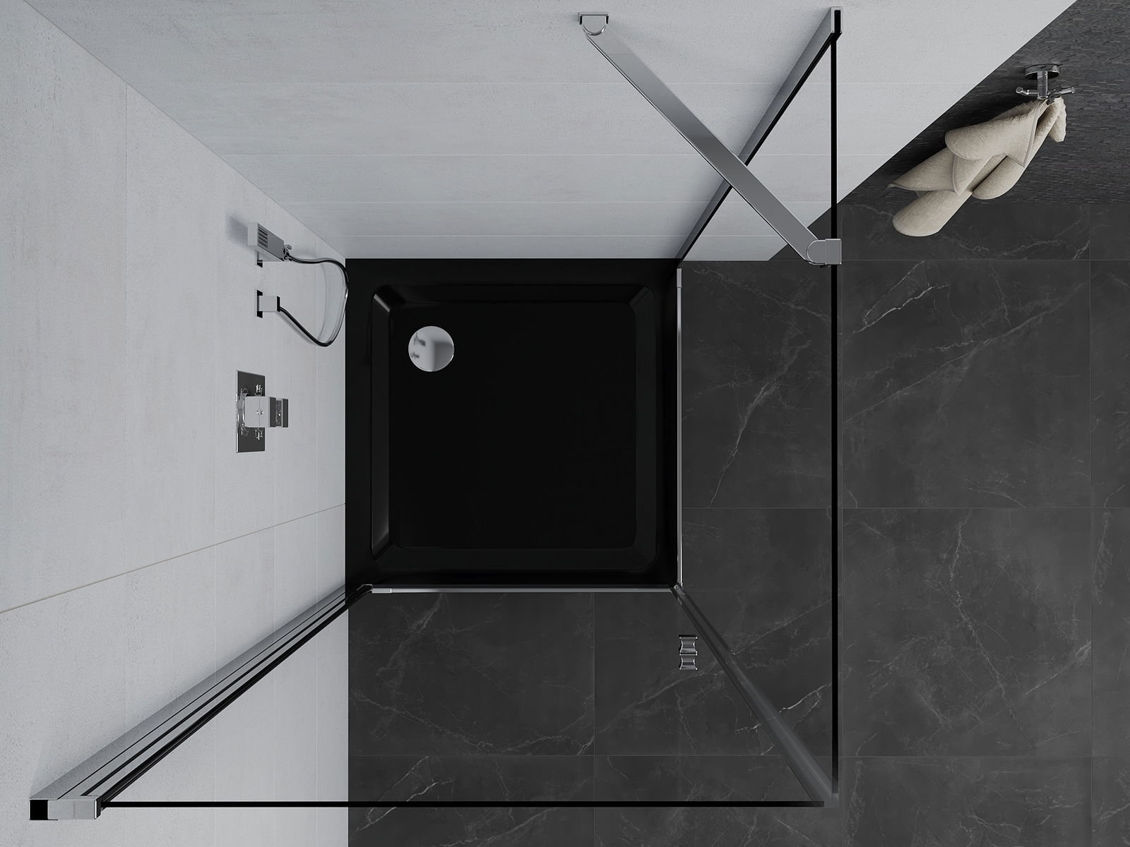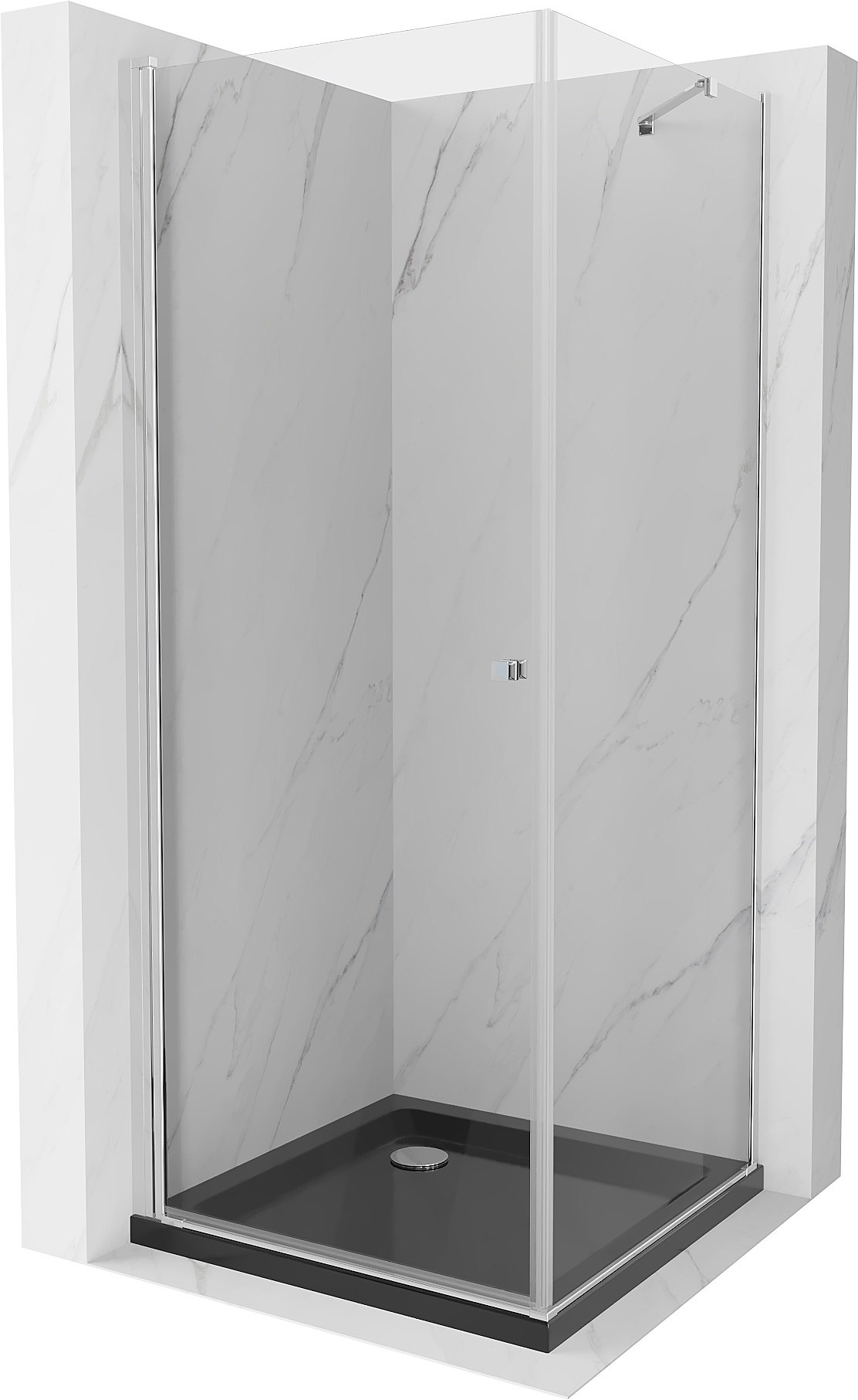 Mexen Pretoria 90 x 90 cm-es nyíló zuhanykabin, átlátszó, króm + Flat tálca, fekete - 852-090-090-01-00-4070