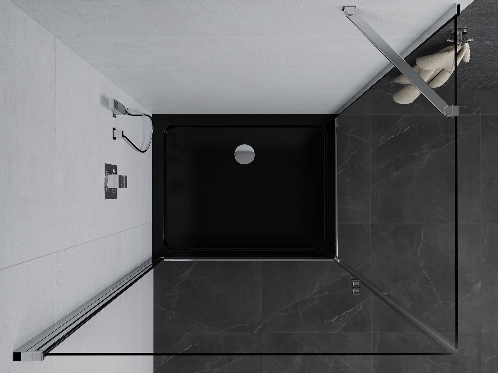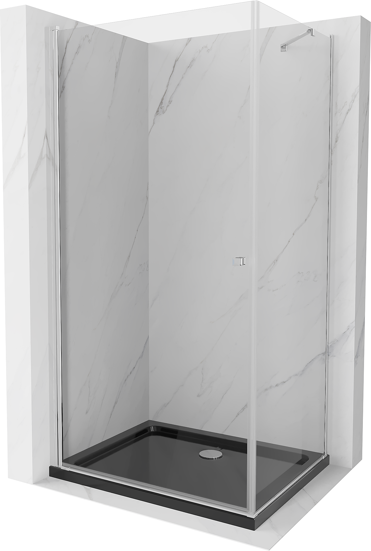 Mexen Pretoria nyitható zuhanykabin 100 x 80 cm, átlátszó, króm + Flat zuhanytálca, fekete - 852-100-080-01-00-4070