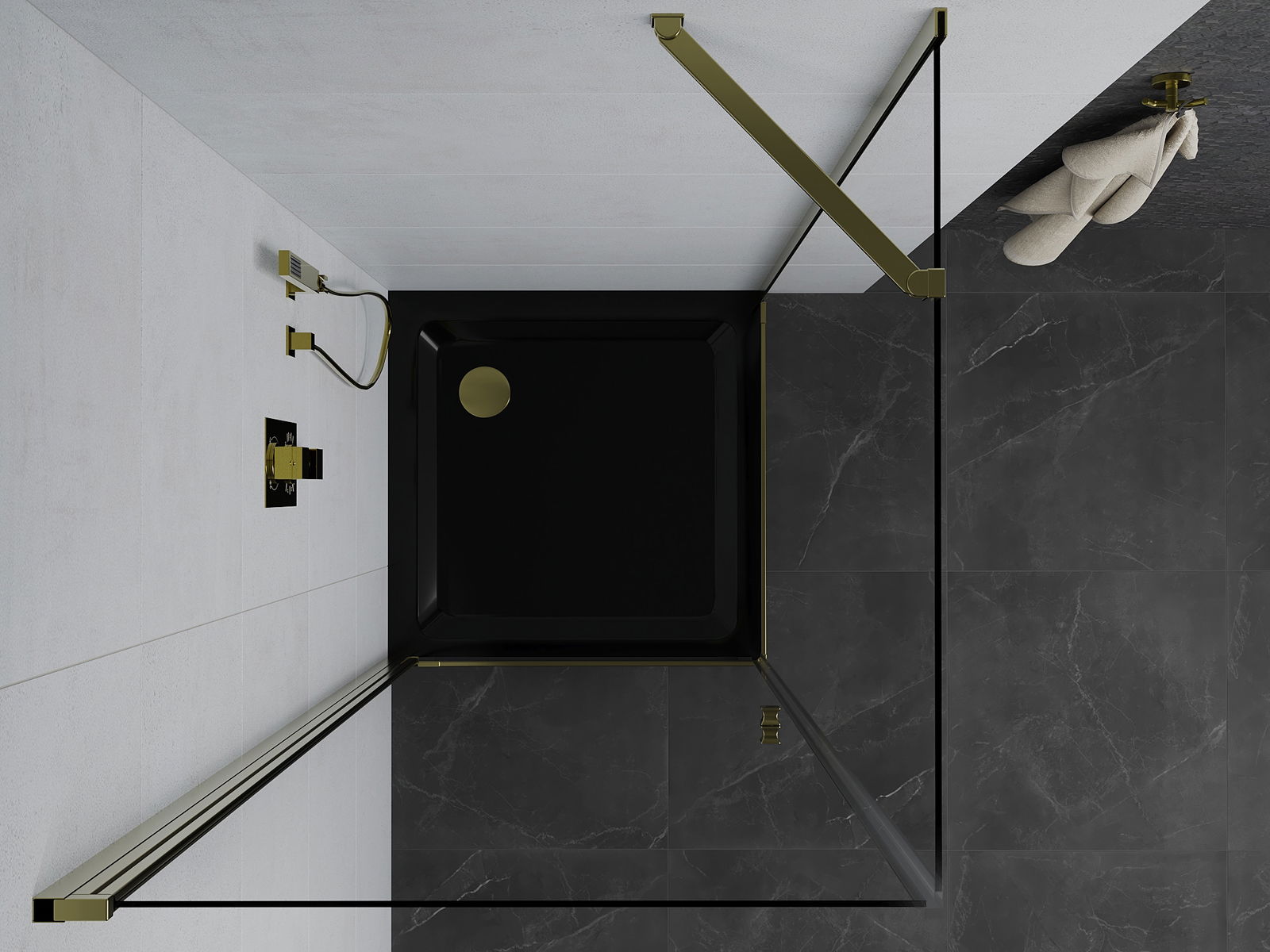 Mexen Pretoria nyíló zuhanykabin 100 x 100 cm, átlátszó, arany + Flat zuhanytálca, fekete - 852-100-100-50-00-4070G