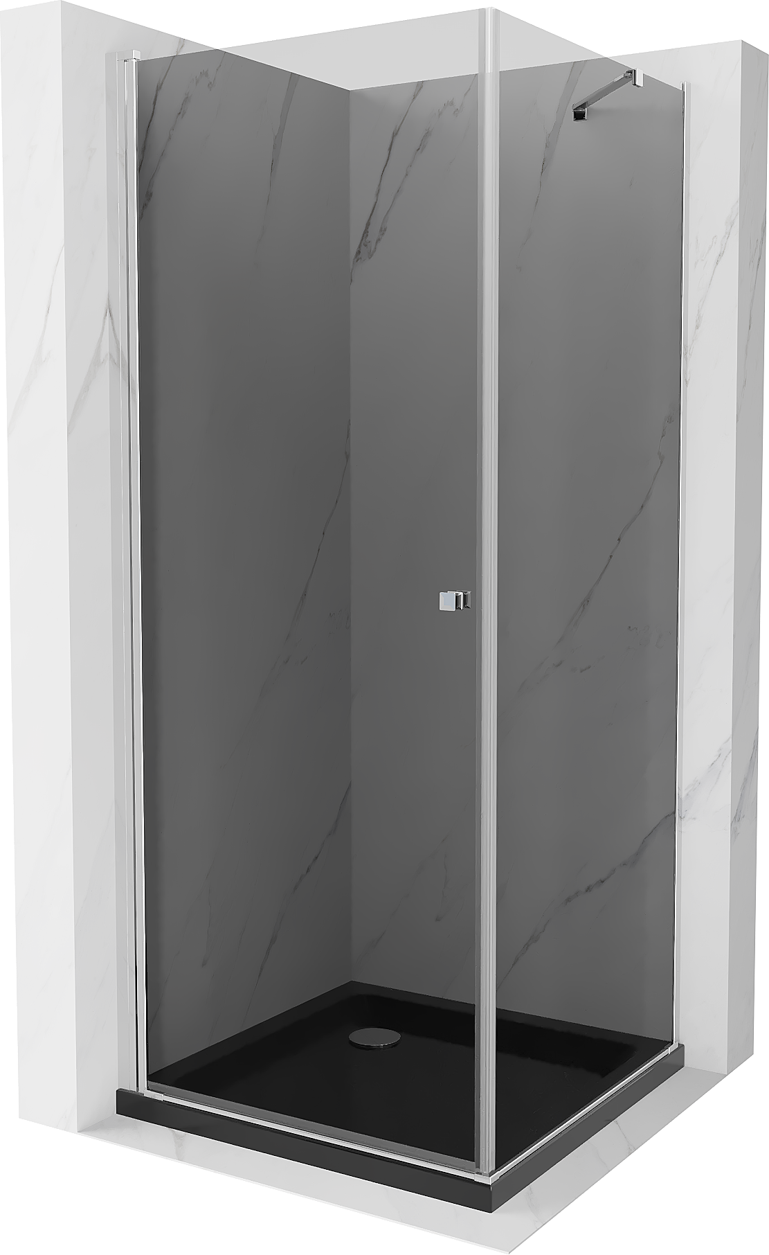 Mexen Pretoria nyíló zuhanykabin 70 x 70 cm, grafit, króm + Flat zuhanytálca, fekete - 852-070-070-01-40-4070