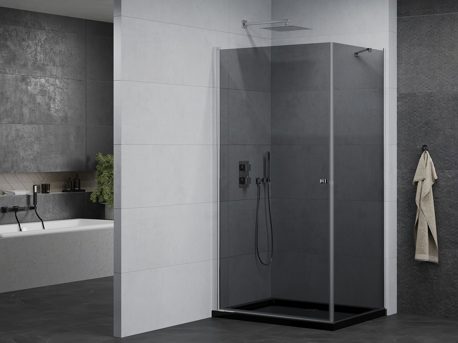 A praktikus és kényelmes fogantyú tartós és ellenálló fémből készült. A divatos forma a profilok színéhez igazított kivitelezéssel együtt modern és stílusos megjelenést kölcsönöz az egésznek, kiemelve minden fürdőszoba esztétikáját.