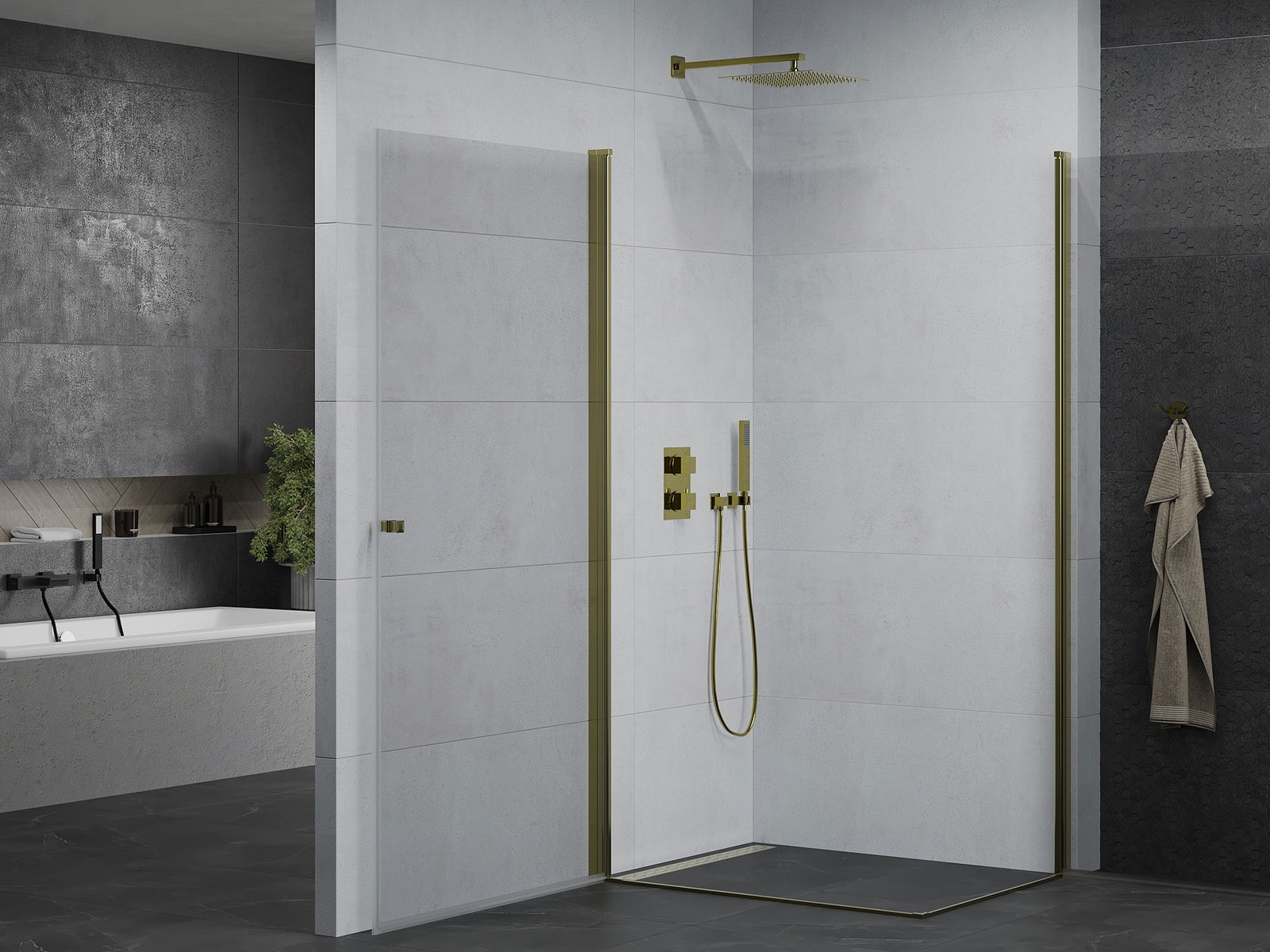 Mexen Pretoria Duo nyíló zuhanykabin 100 x 90 cm, átlátszó, arany - 852-100-090-50-00-02