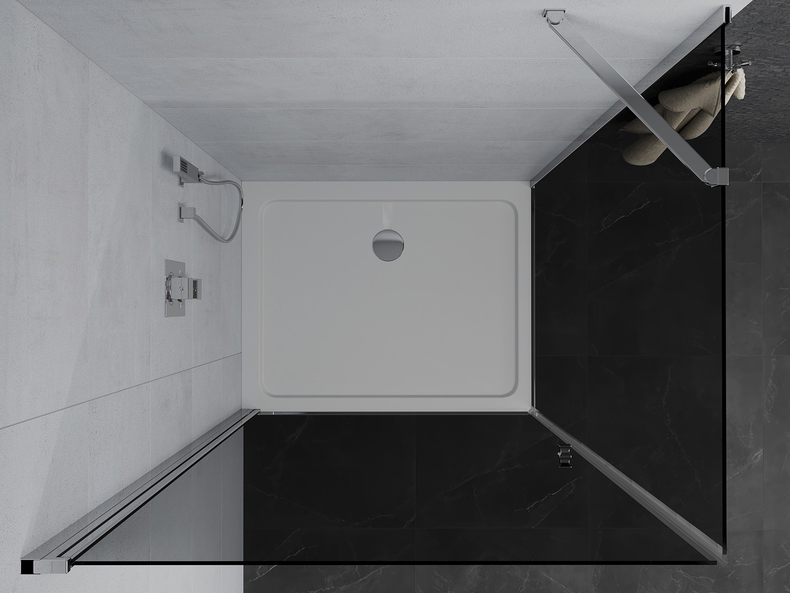 Mexen Pretoria 100 x 70 cm-es kifelé nyíló zuhanykabin, grafit, króm + Flat zuhanytálca - 852-100-070-01-40-4010