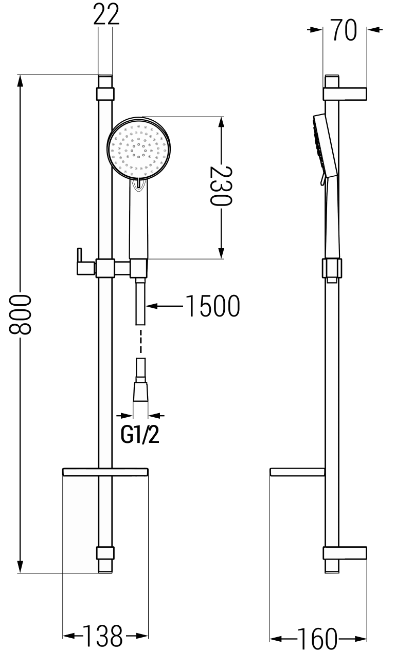 A 1/2"-es menetes csatlakozás széles körben alkalmazott szabványos elem a belső vízvezeték-rendszerekben. Ezáltal a zuhany további elemeinek csatlakoztatása és felszerelése sokkal egyszerűbb és intuitívabb.