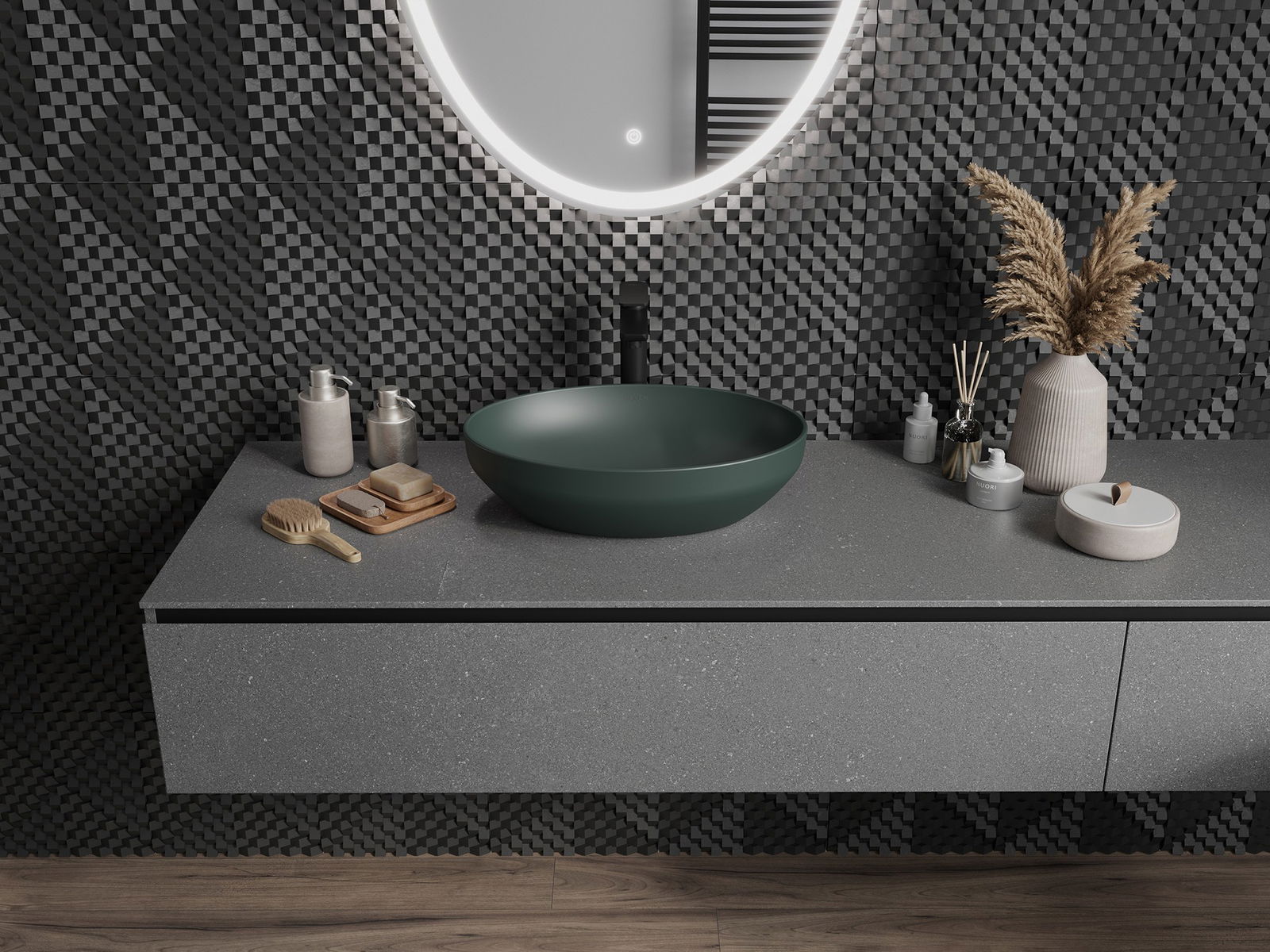A kerámia matt felülete tökéletesen hangsúlyozza a termék színének természetét, így egyedi és kifejező felületet biztosít. A matt kerámia finom szerkezete eleganciát vezet be a fürdőszobában, esztétikai teret teremtve.