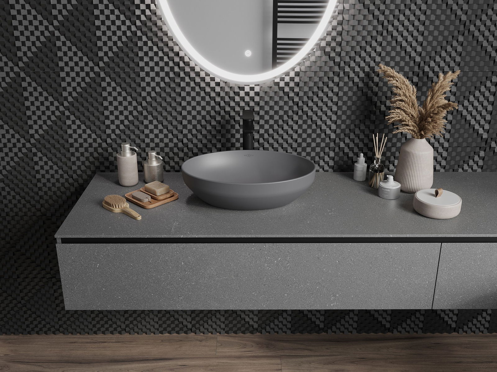 A kerámia matt felülete tökéletesen hangsúlyozza a termék színének természetét, így egyedi és kifejező felületet biztosít. A matt kerámia finom szerkezete eleganciát vezet be a fürdőszobában, esztétikai teret teremtve.
