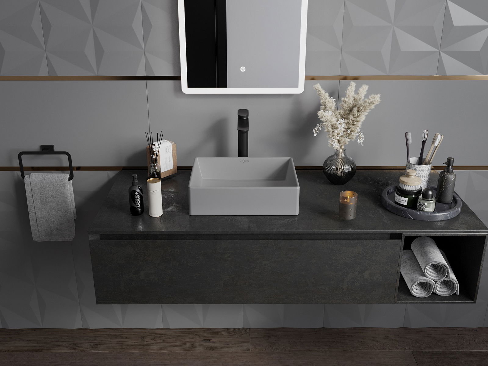 A kerámia matt felülete tökéletesen hangsúlyozza a termék színének természetét, így egyedi és kifejező felületet biztosít. A matt kerámia finom szerkezete eleganciát vezet be a fürdőszobában, esztétikai teret teremtve.