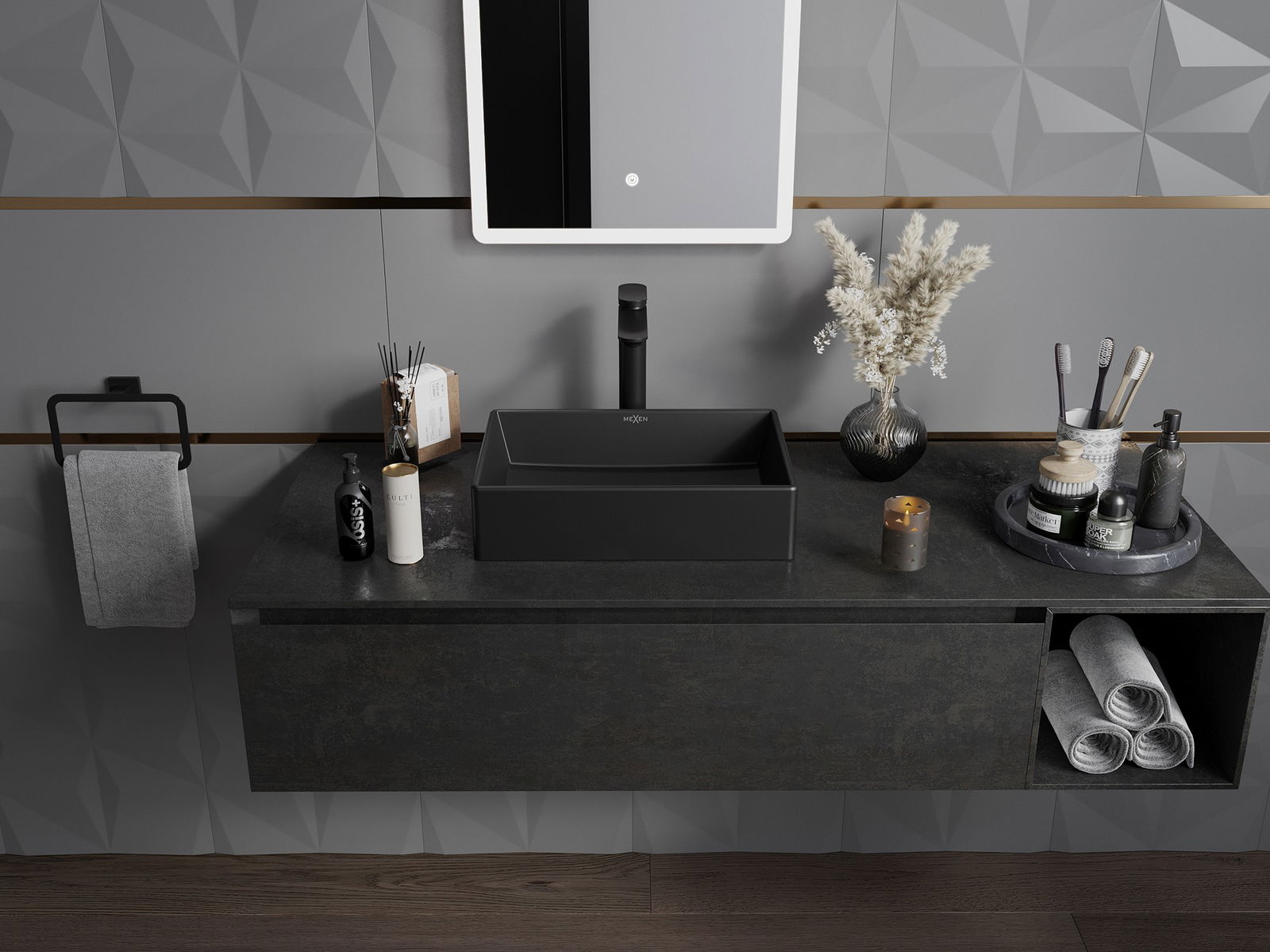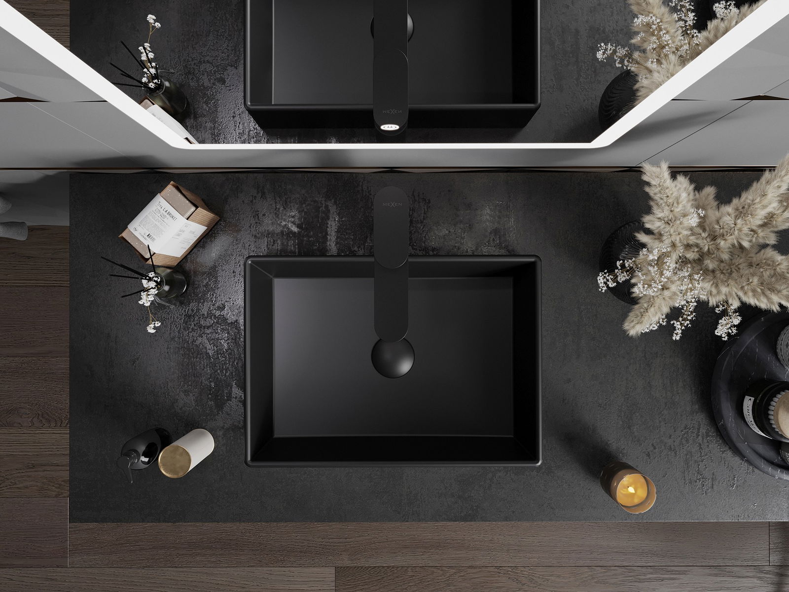 A kerámia matt felülete tökéletesen hangsúlyozza a termék színének természetét, így egyedi és kifejező felületet biztosít. A matt kerámia finom szerkezete eleganciát vezet be a fürdőszobában, esztétikai teret teremtve.