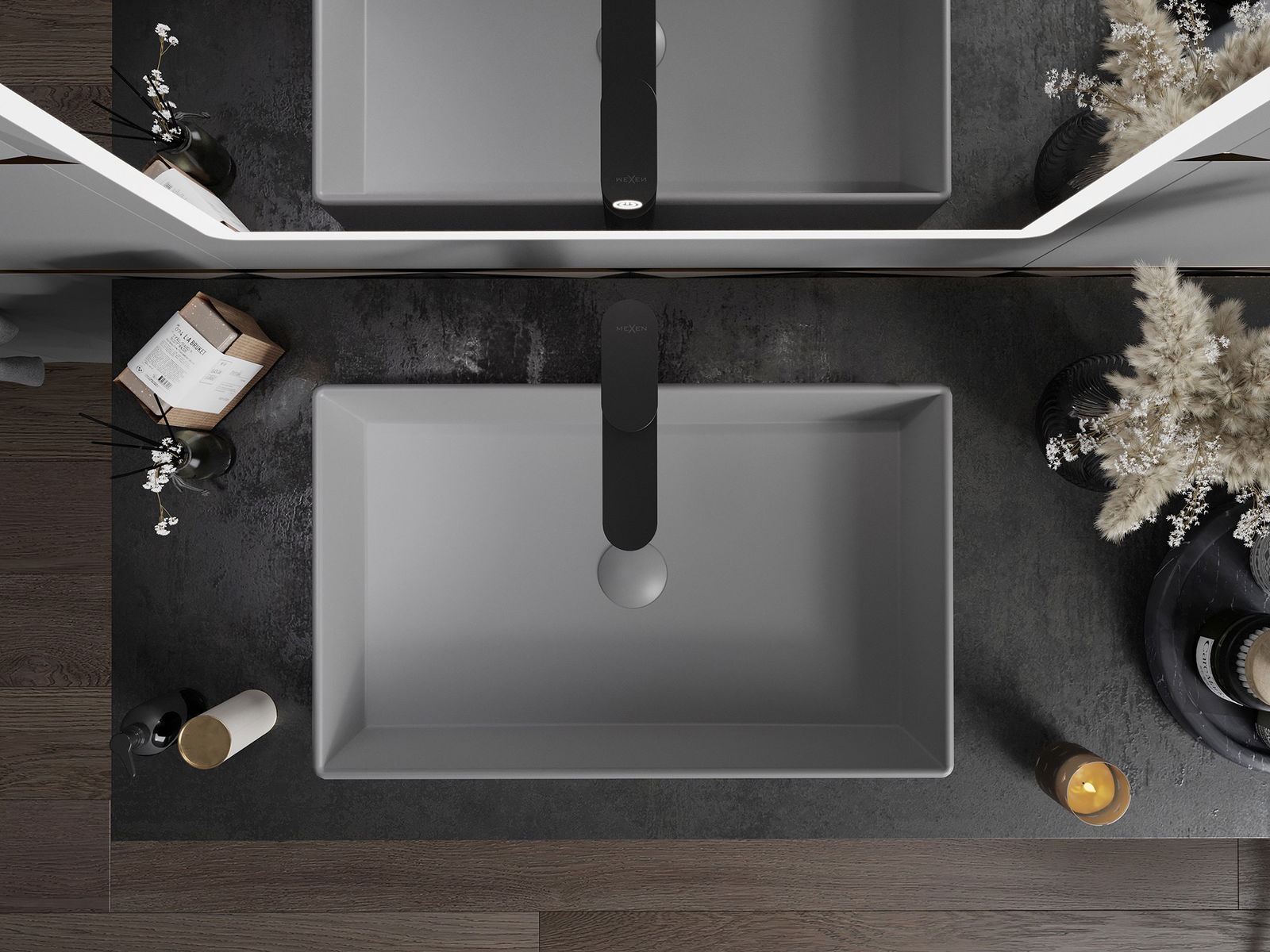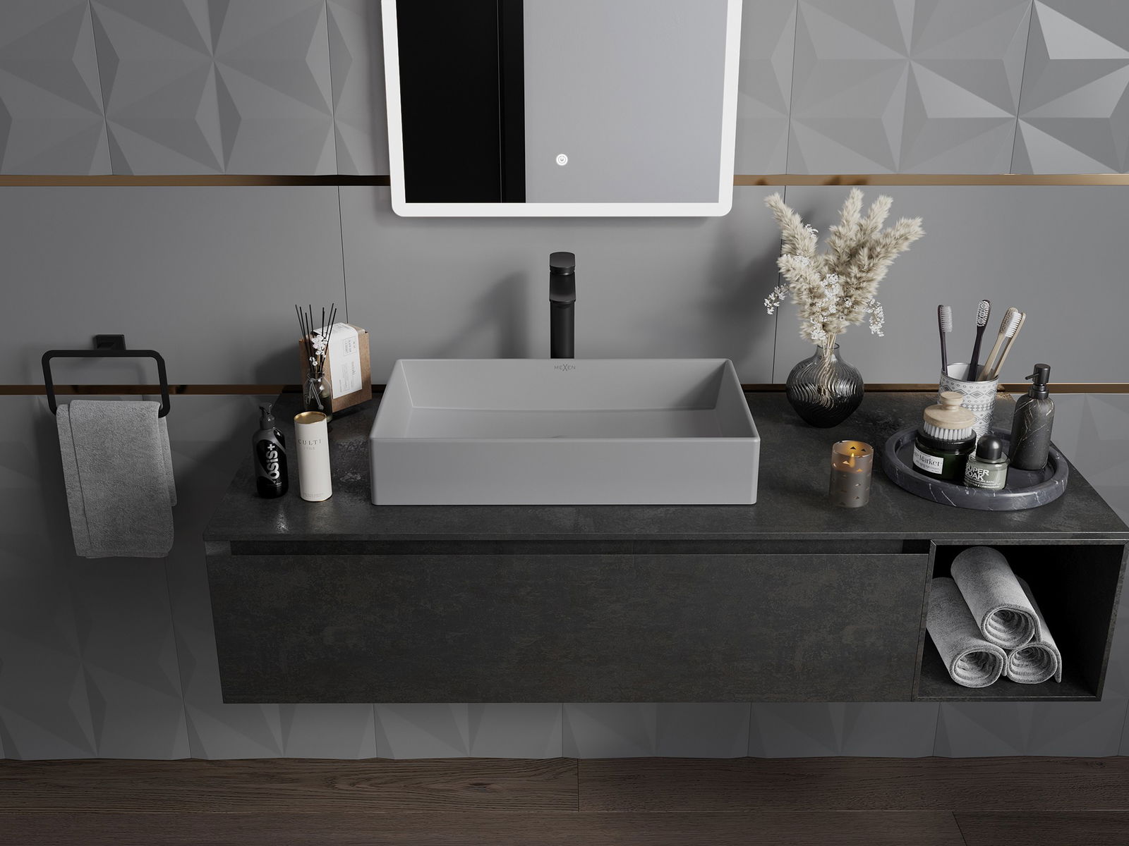 A kerámia matt felülete tökéletesen hangsúlyozza a termék színének természetét, így egyedi és kifejező felületet biztosít. A matt kerámia finom szerkezete eleganciát vezet be a fürdőszobában, esztétikai teret teremtve.