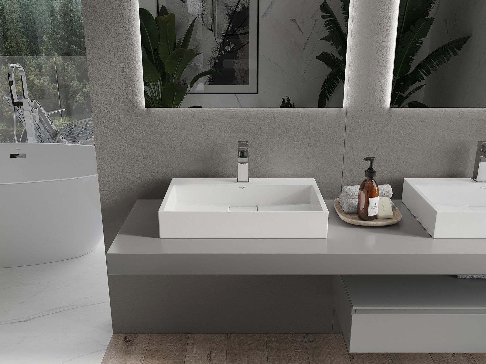 Mexen Ava felületi mosdókagyló konglomerátumból 1/O 60 x 38 cm, fehér - 23016001