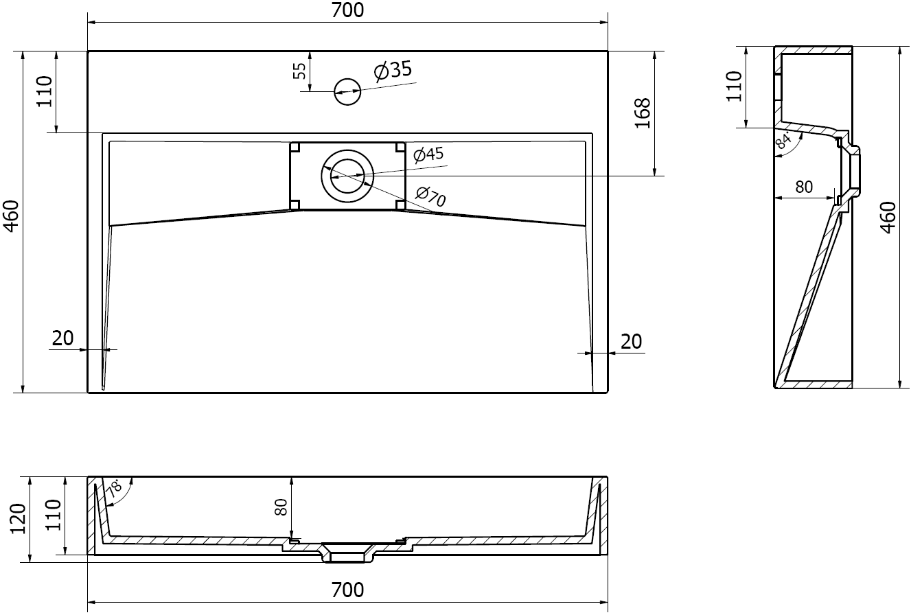 Méret: 70x46x11 cm