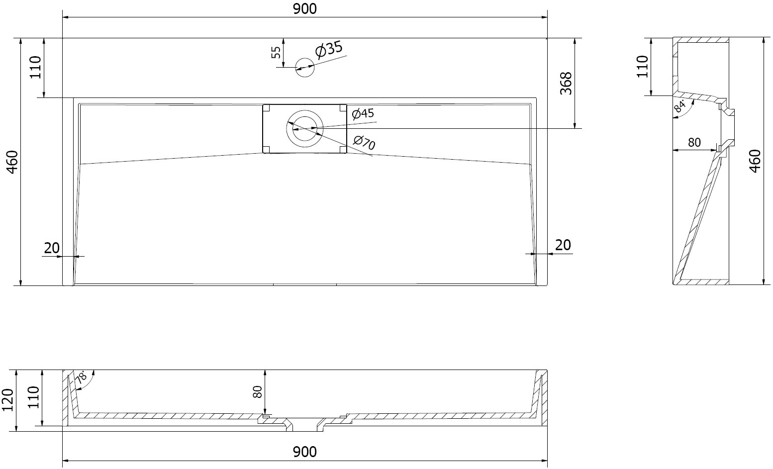 Méret: 90x46x11 cm