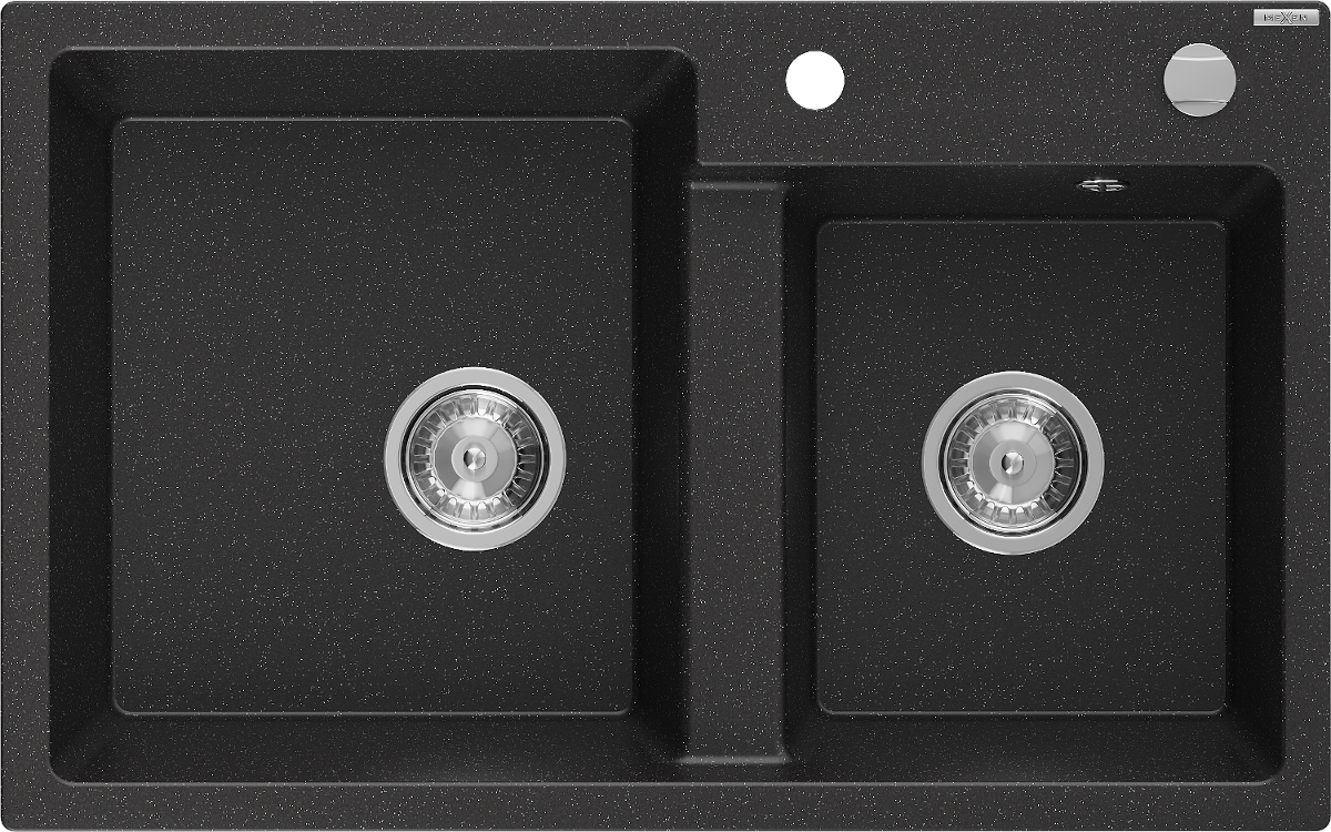 Mexen Tomas 2 rekeszes gránit mosogató 800 x 500 mm, fekete/ezüst metál, krómozott szifon - 6516802000-73