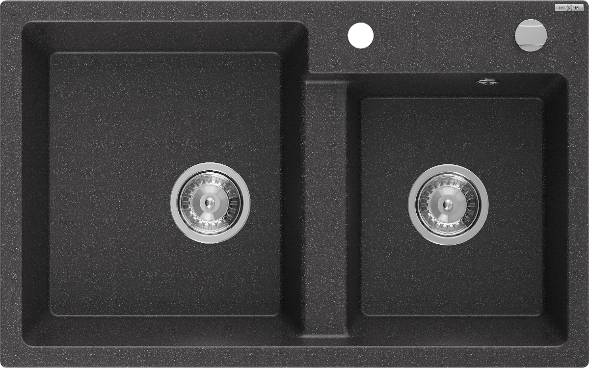 Mexen Tomas gránit mosogató 2 rekeszes 800 x 500 mm, fekete pöttyös, króm szifon - 6516802000-76