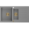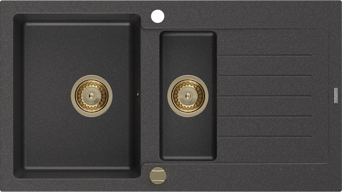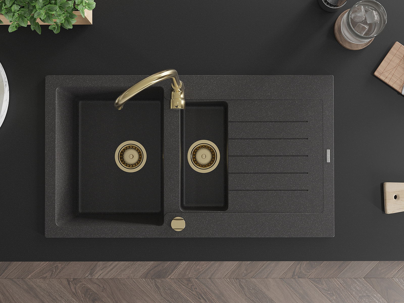 Mexen Matias 1,5-medencés gránit mosogató csepegtetővel 900 x 505 mm, fekete pöttyös, arany szifonnal - 6502901505-76-G