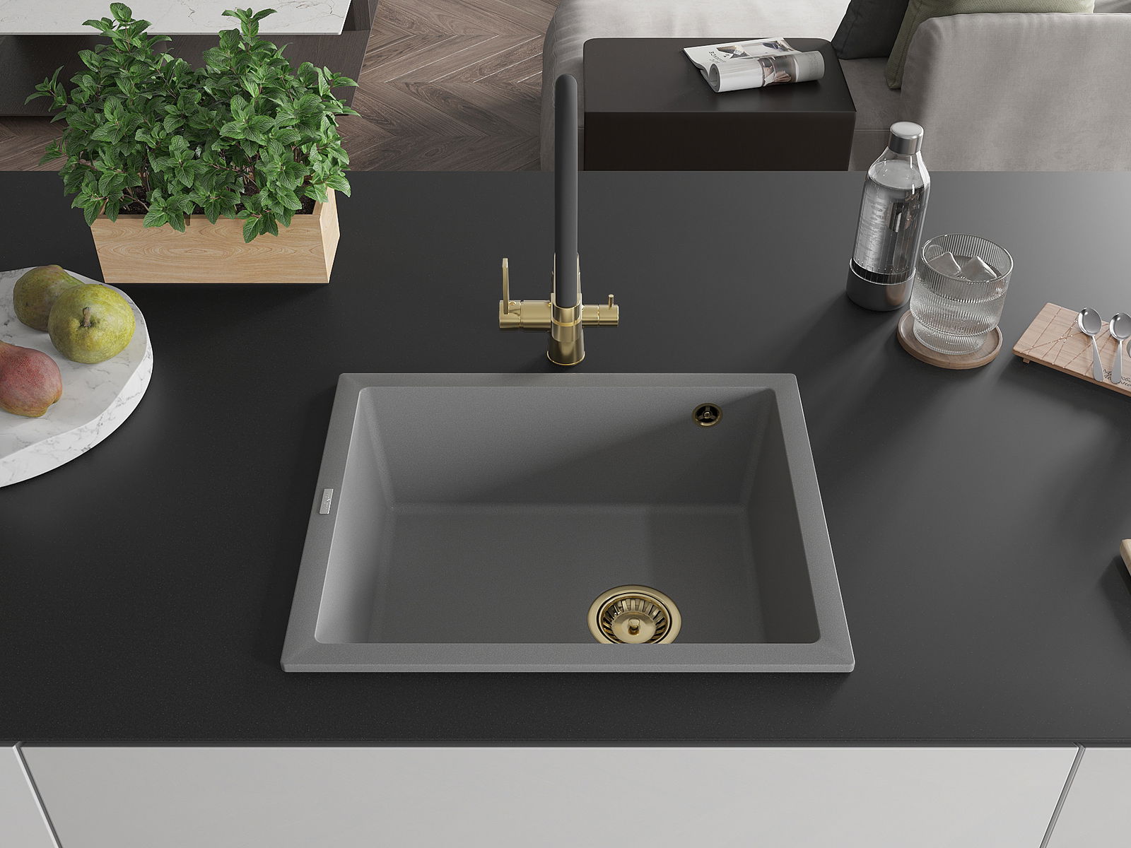A mosogató kiváló minőségű gránitból készül. Ez egy elegáns és mindenekelőtt minden konyhához praktikus kiegészítés, stílusától függetlenül. A kiváló minőségű és a gránit tartósság biztosítja a sok éves használatát.