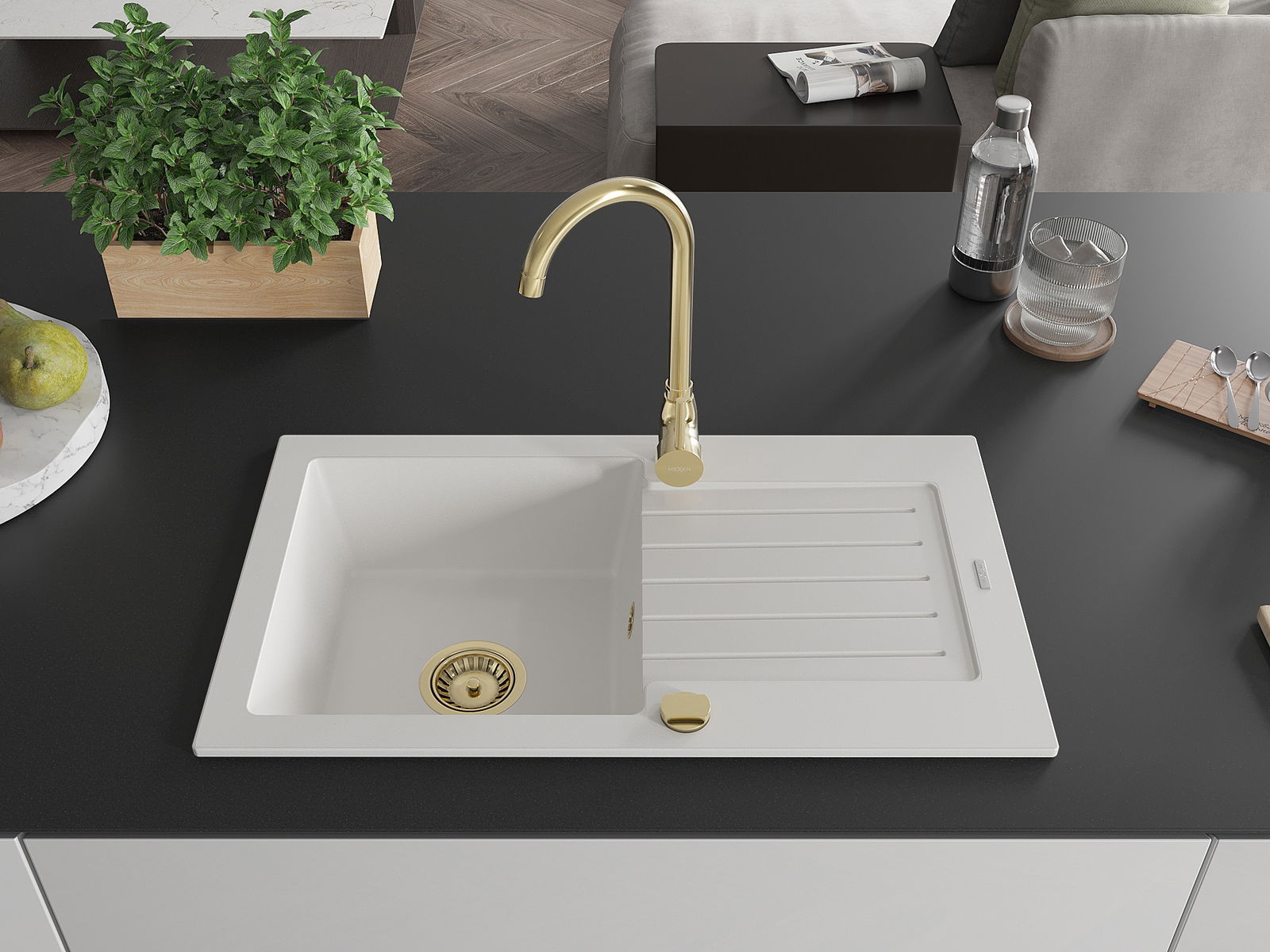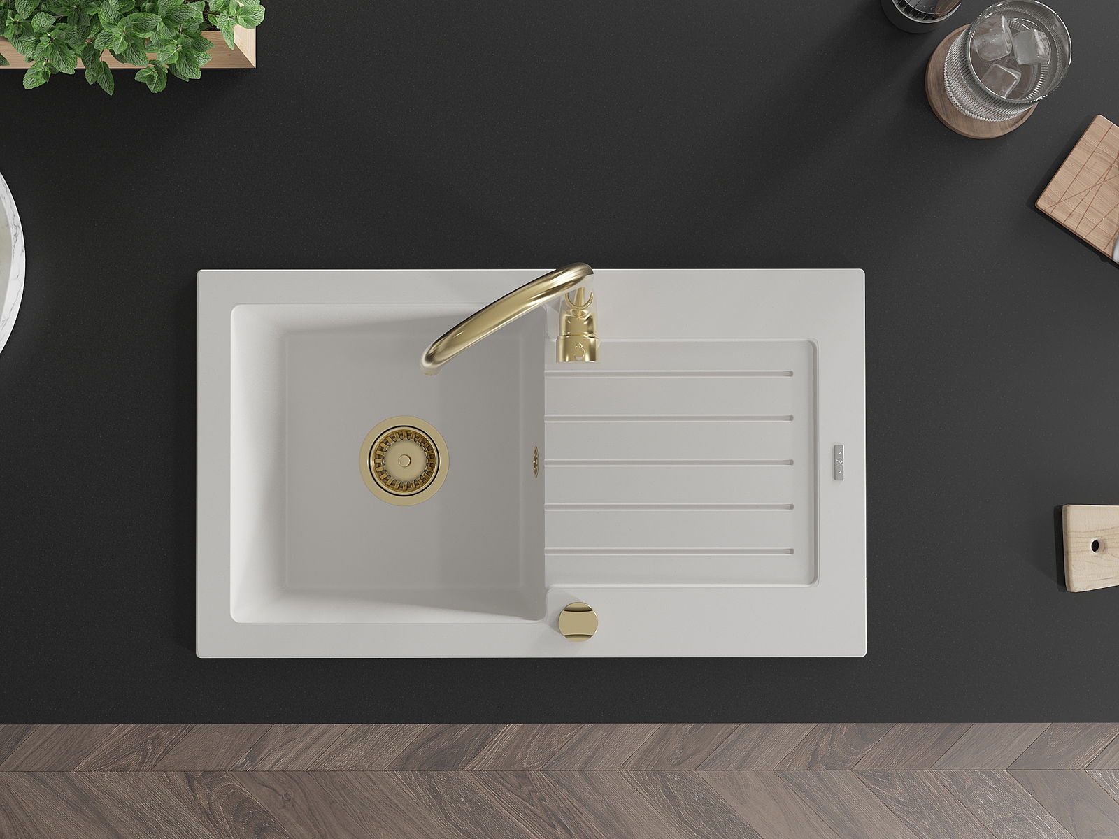 A mosogató magas minőségű gránitból készült. Elegáns, de mindenekelőtt praktikus kiegészítője minden konyhának, függetlenül annak stílusától. A gránit magas minősége és tartóssága hosszú távú használatot biztosít.