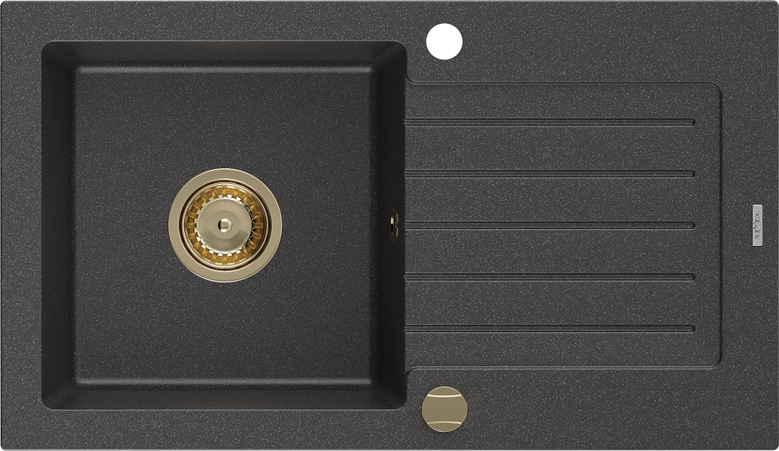 Mexen Pablo gránit mosogató 1-medencés csepegtetővel 752 x 436 mm, fekete pöttyös, arany szifon - 6510751010-76-G