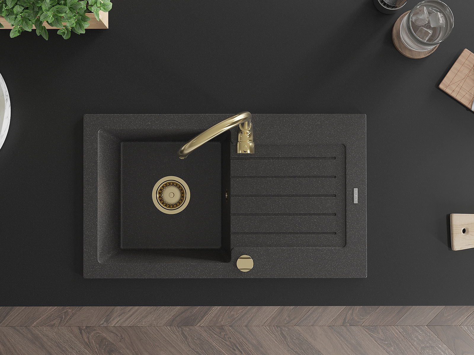 A mosogató kiváló minőségű gránitból készül. Ez egy elegáns és mindenekelőtt minden konyhához praktikus kiegészítés, stílusától függetlenül. A kiváló minőségű és a gránit tartósság biztosítja a sok éves használatát.