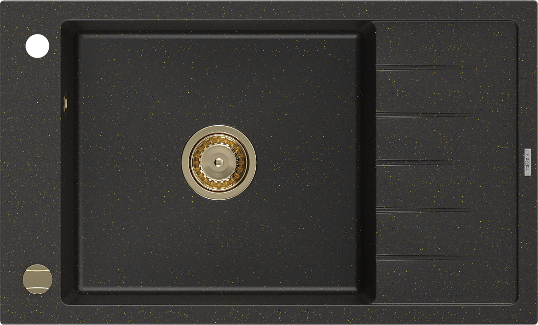 Mexen Elias gránit mosogató 1-medencés csepegtetővel 795 x 480 mm, fekete/arany metál, arany szifon - 6511791005-75-G