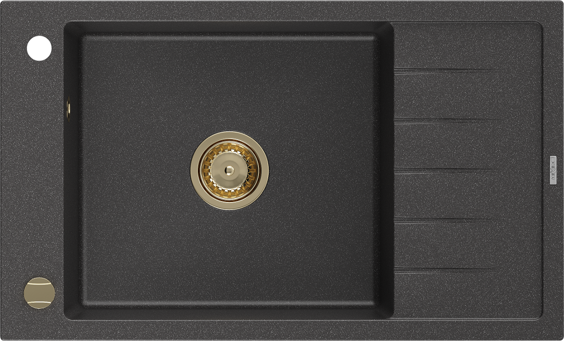 Mexen Elias egymedencés gránit mosogató csepegtetővel 795 x 480 mm, fekete pöttyös, arany szifonnal - 6511791005-76-G