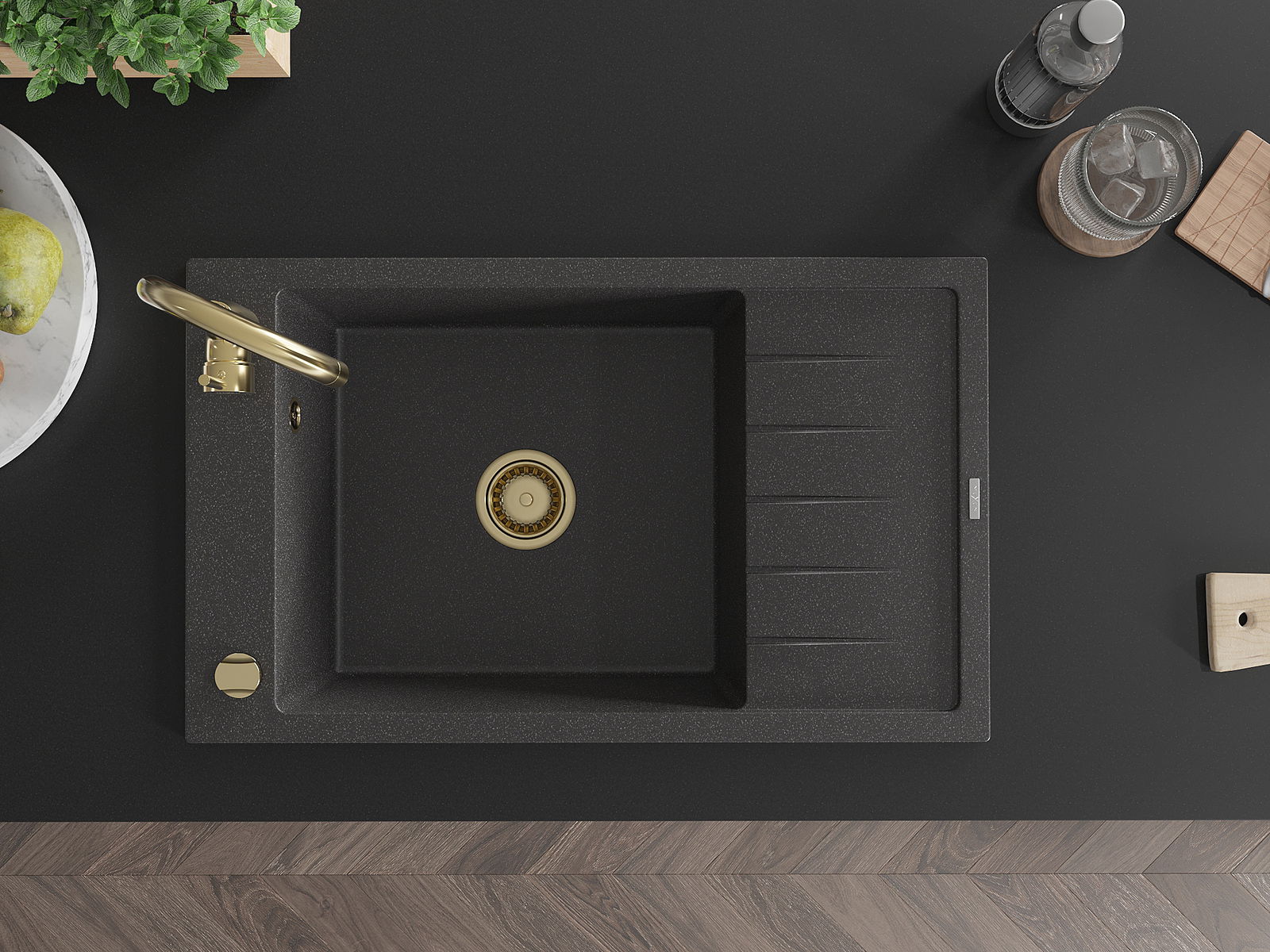 A mosogató kiváló minőségű gránitból készül. Ez egy elegáns és mindenekelőtt minden konyhához praktikus kiegészítés, stílusától függetlenül. A kiváló minőségű és a gránit tartósság biztosítja a sok éves használatát.