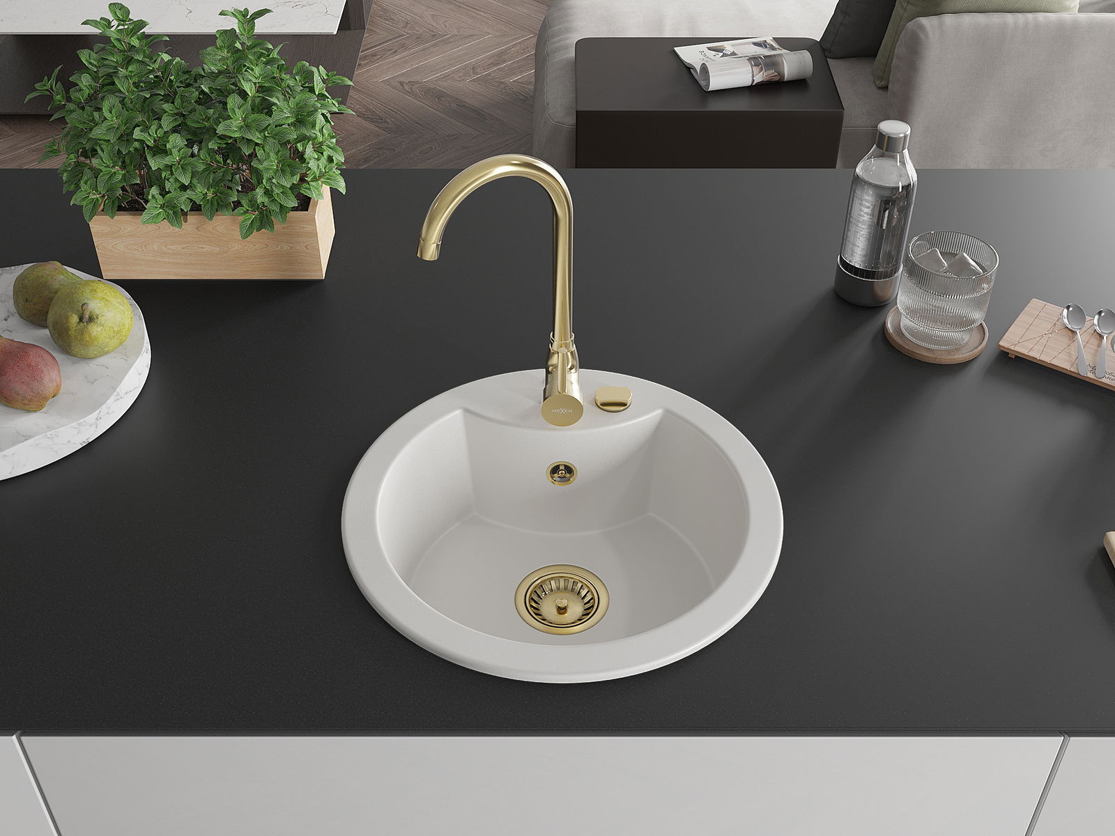 A mosogató kiváló minőségű gránitból készül. Ez egy elegáns és mindenekelőtt minden konyhához praktikus kiegészítés, stílusától függetlenül. A kiváló minőségű és a gránit tartósság biztosítja a sok éves használatát.