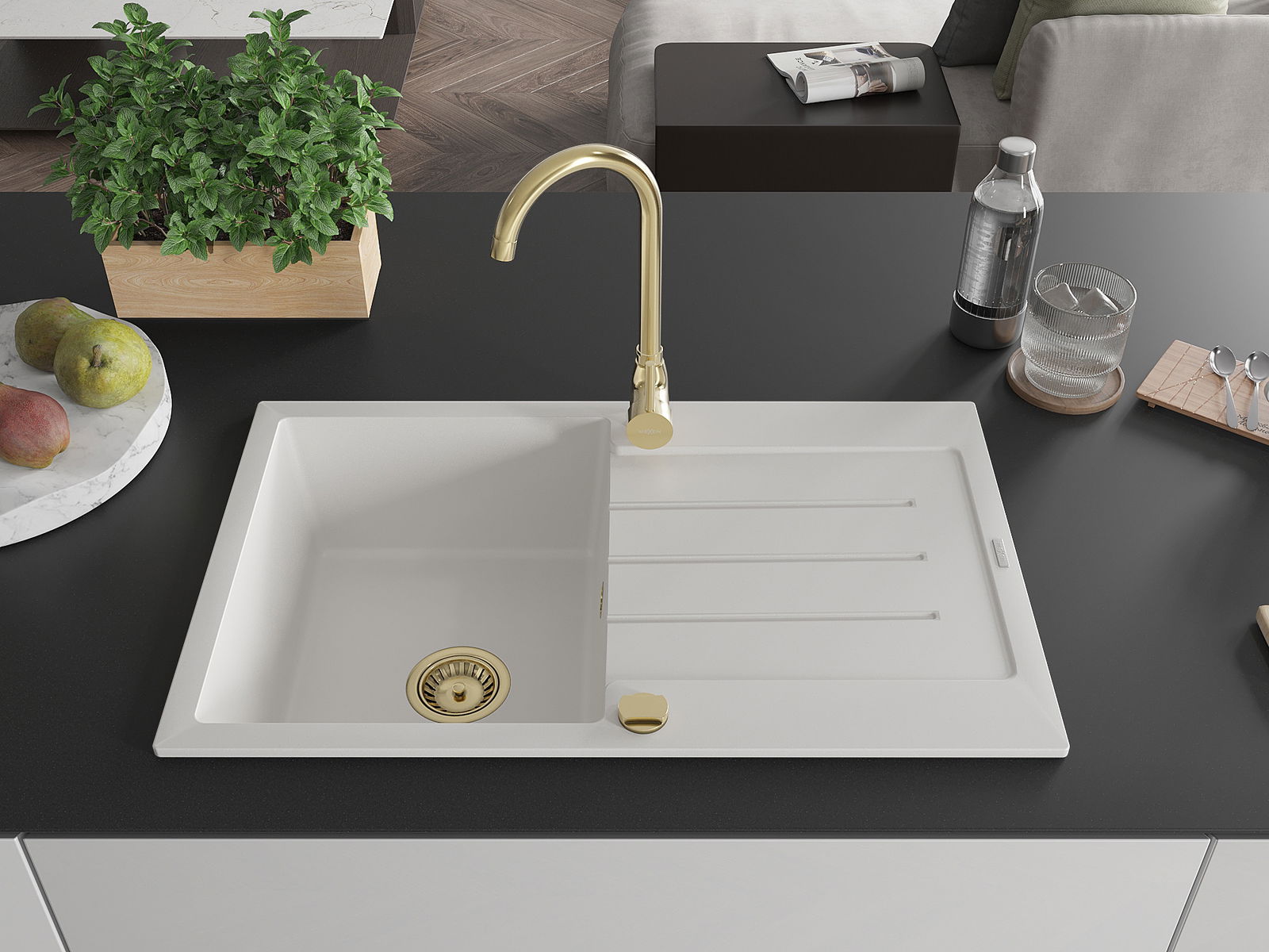A mosogató felülete ellenáll a foltoknak és a elszíneződésnek, amelynek köszönhetően könnyű megtisztítani és hosszú ideig megtartja színét. Esztétikai és gyakorlatilag kiegészítve minden konyhát.