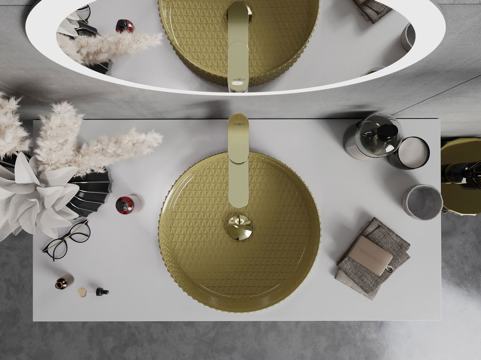 A mosogatót megkülönbözteti a kristályok egyedi szerkezete, amely egyedülálló és rendkívül hatékony megjelenést biztosít. A kristályok a fényben ragyognak, megragadva a szemet és hozzáadva az eleganciát. Gyakorlati és stílusos megoldás minden fürdőszobához.