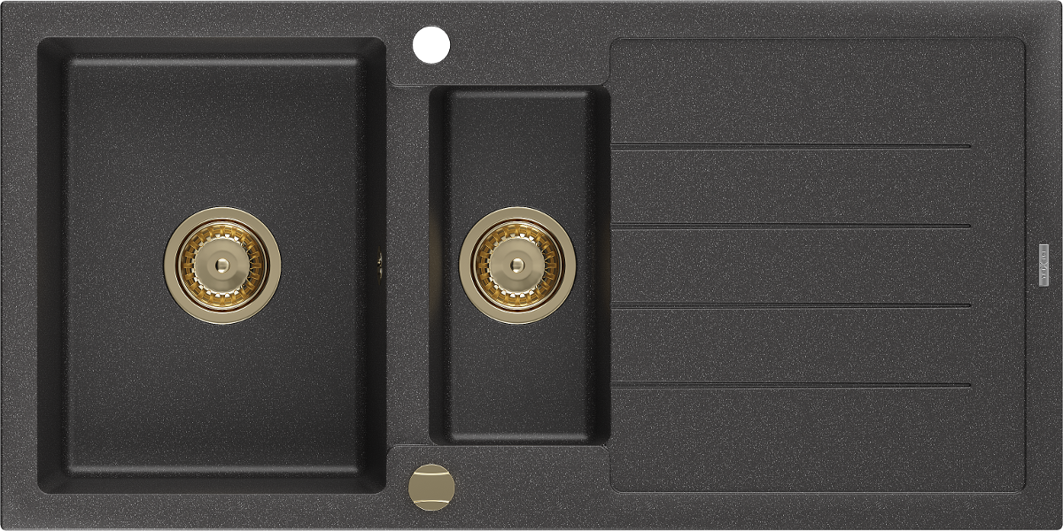 Mexen Andres gránit mosogató 1,5 medencés csepegtetővel 1000 x 500 mm fekete pöttyözött, arany szifonnal - 6515101510-76-G