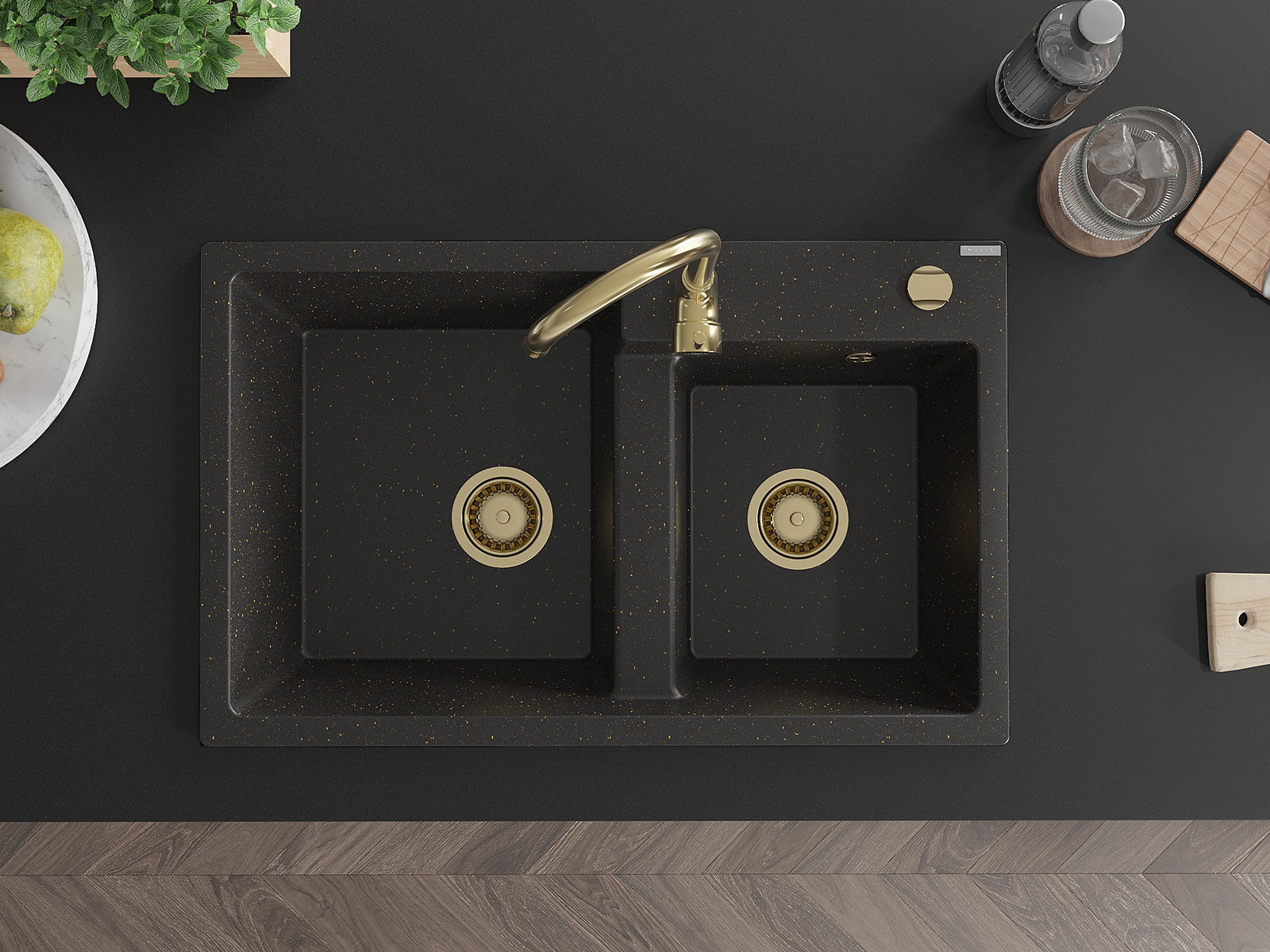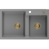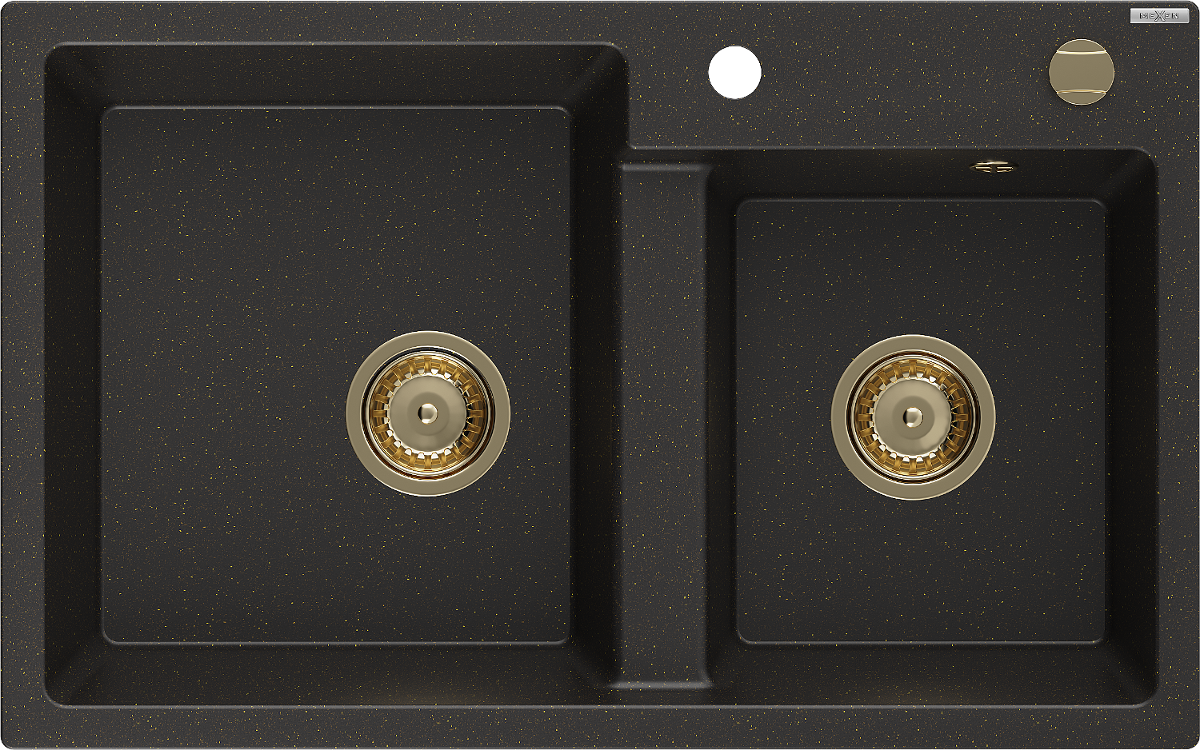 Mexen Tomas gránit 2-medencés mosogató 800 x 500 mm, fekete/arany metál, arany szifon - 6516802000-75-G