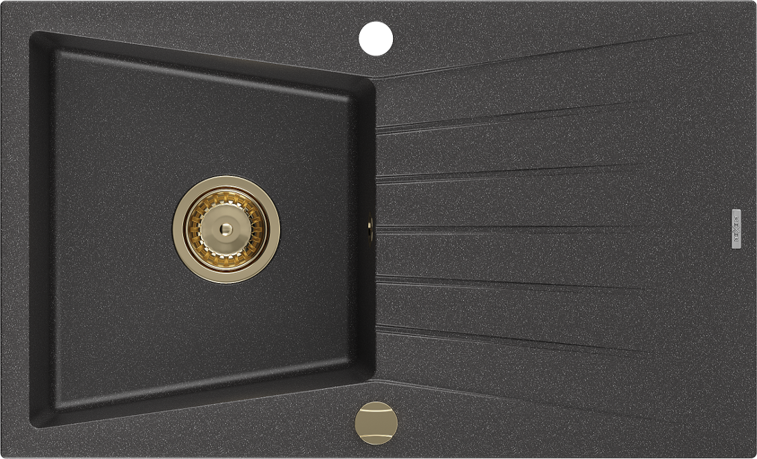 Mexen Cesar egymedencés gránit mosogató csepegtetővel 775 x 470 mm, fekete pöttyös, arany szifonnal - 6514771010-76-G