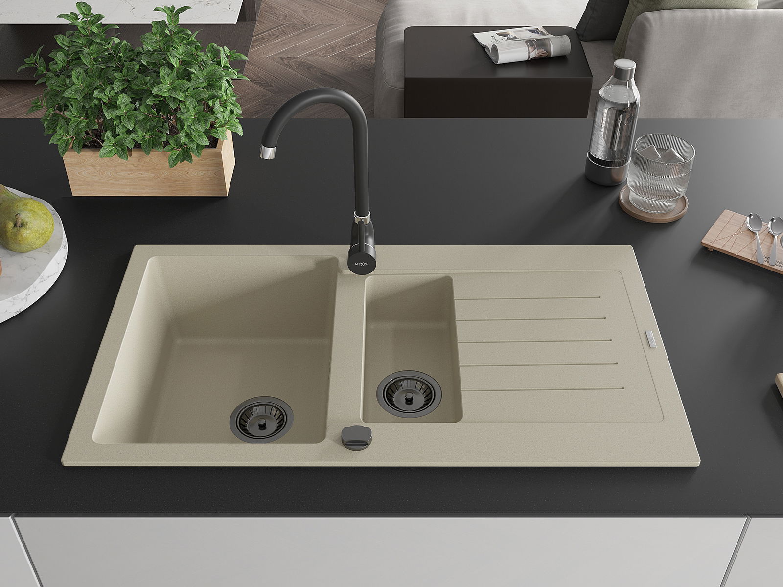 A mosogató kiváló minőségű gránitból készül. Ez egy elegáns és mindenekelőtt minden konyhához praktikus kiegészítés, stílusától függetlenül. A kiváló minőségű és a gránit tartósság biztosítja a sok éves használatát.
