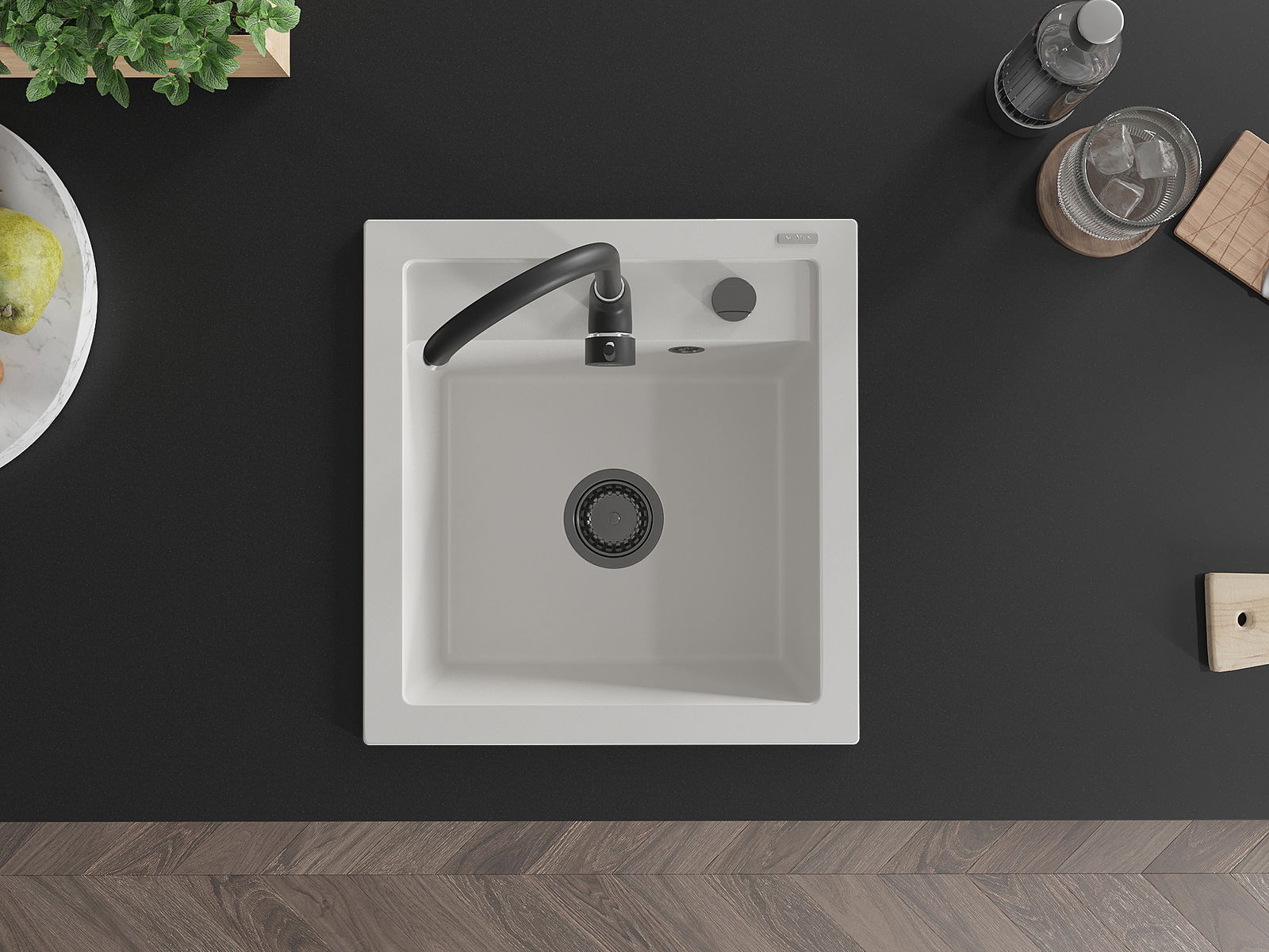 A mosogató kiváló minőségű gránitból készül. Ez egy elegáns és mindenekelőtt minden konyhához praktikus kiegészítés, stílusától függetlenül. A kiváló minőségű és a gránit tartósság biztosítja a sok éves használatát.