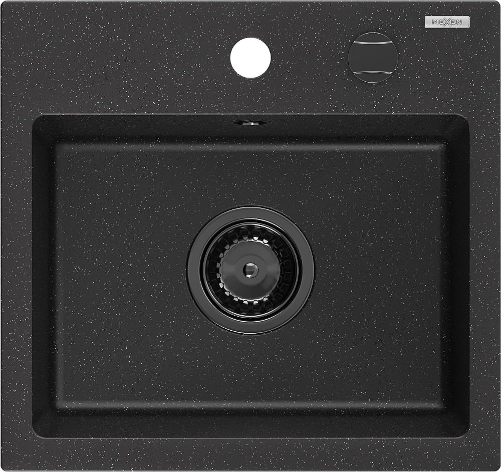 Mexen Milo gránit mosogató 1-medencés 435 x 410 mm, fekete/ezüst metál, fekete szifon - 6505441000-73-B